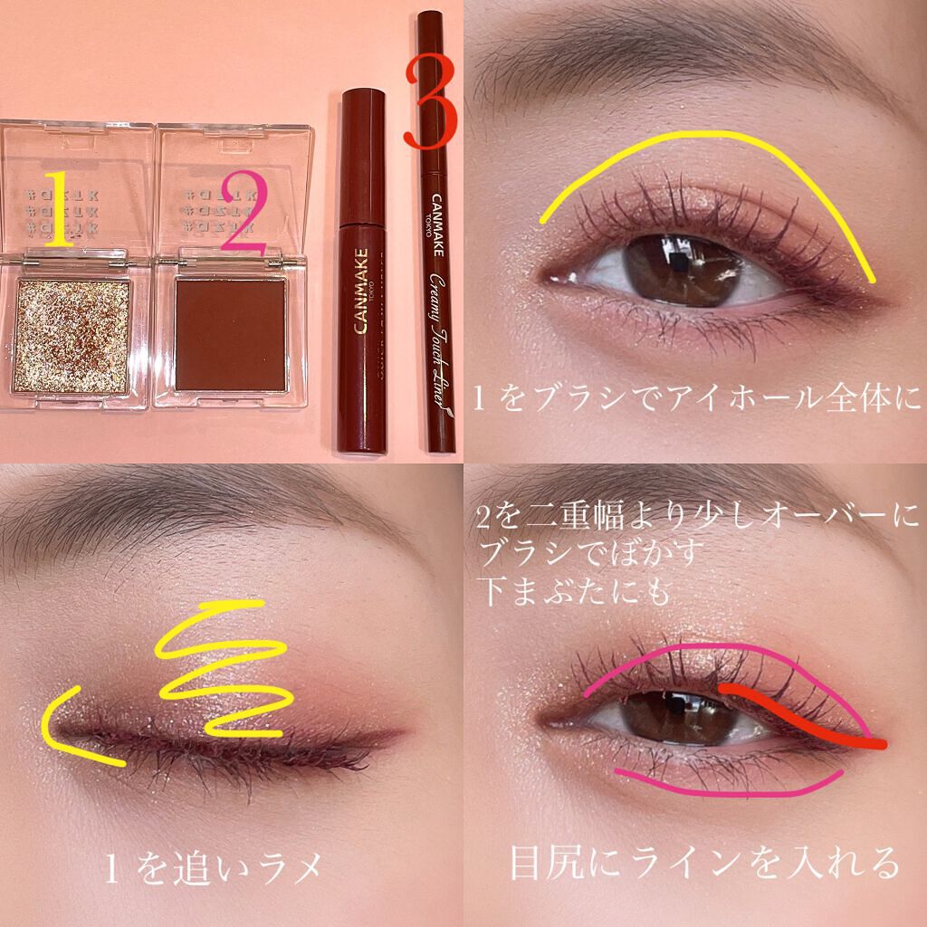 手の出しやすいデパコス アイグロウジェムとのコラボで より美しい艶感を🥺💓💓 3色を考えずに重ねるだけで完成するので とっても時短になります! 使いやすいオレンジ系カラーの ブリックブラウン。 アイライン、マスカラを抜け感のある ブラウンにすることで 垢抜け間違いなしです🥺💓