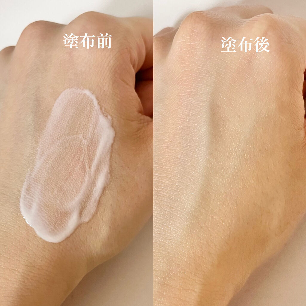 テクスチャーはみずみずしく伸びがよくてしっとりさっぱりな使い心地☺️ ツボクサエキスなども潤い成分が配合されているので乾燥しにくい! ピンクベースでしっとりしたテクスチャーで伸びが良い✨️ 自然に透明感のある肌へトーンアップしてくれる☺️ しっかりUVカットしてくれるのに石鹸でオフできて低刺激処方なのが嬉しい◎