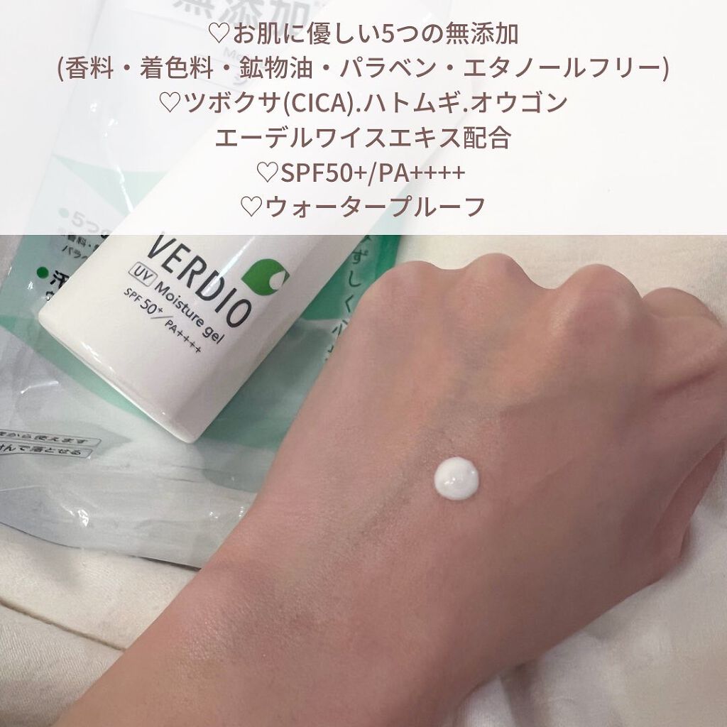 ベルディオは無添加・低刺激性の日やけ止めです。香料、鉱物油、パラベン、エタノール(4種共通成分) デリケートなお肌を紫外線からしっかり守る、みずみずしくうるおい続くジェルタイプUV。 優しいピンク色。なめらかなテクスチャーのジェル。すっと伸びて、ぴたっとなじんでくれます。