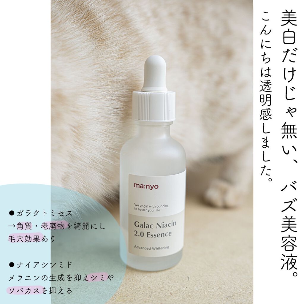 - ビタミン、アミノ酸などの有効成分を豊富に含んだガラクトミセスが93%配合され、皮脂・水分バランスの調節、毛穴ケア、トーンアップケアをサポート。ナイアシンアミド4%配合でメラニンの生成を防ぐ濃縮美容液です。水のような軽いテクスチャーでべたつきません。愛用者からは「2週間で肌の変化を実感した」との声が多く届いています。