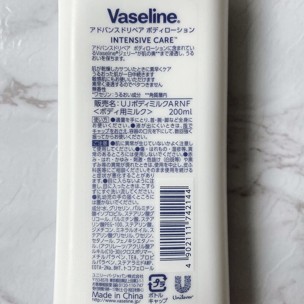 - うるおいたっぷりなのにベタつかない使い心地で、普通肌から乾燥肌、敏感肌の方の肌のうるおいを守ります。 Vaseline®ジェリー*配合 140年間守り続けてきたうるおい成分が肌の奥(角質層)まで浸透。 うるおった肌が一日中続きます。敏感肌の方にもお使いいただけます。 *ワセリン:うるおい成分 用途にあわせた2つのサイズ 200ml : 2014年の発売以来、大好評 400ml : お得な大容量サイズ。ポンプタイプで使いやすい