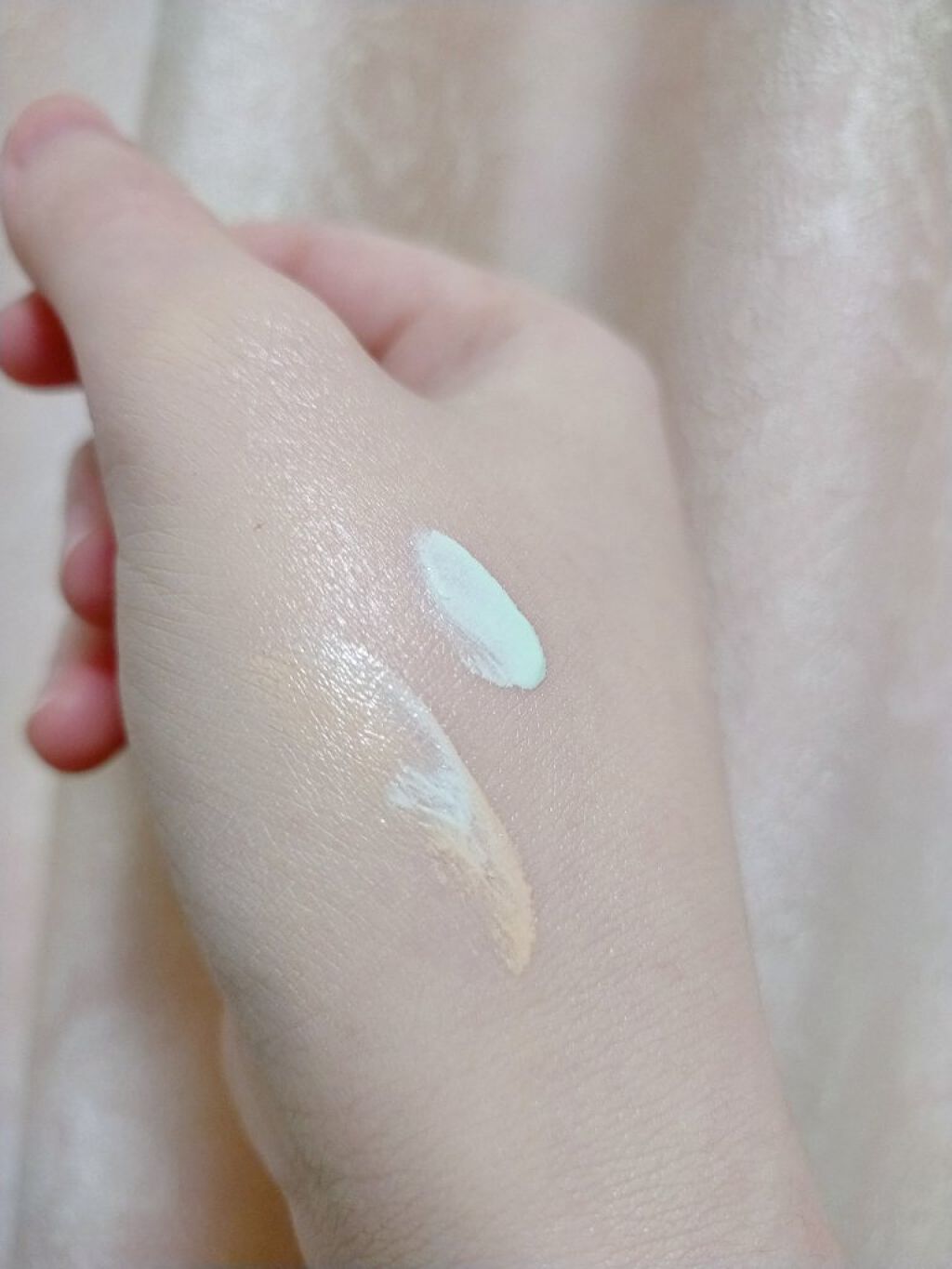 | グリーン部分は鎮静成分入りで赤みを抑えたり肌トラブルがある時、パフで叩き込むことでケアも同時に出来る | 詳細を見る | ||