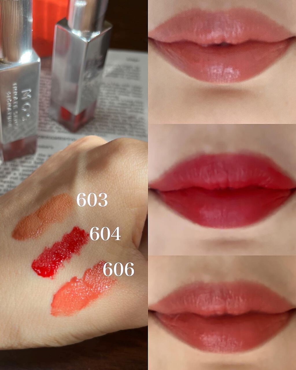 エアーブリーズマットティントは澄んだカラー感で発色されるマットリップティントです✨ 水分とオイルの絶妙なバランスでによって乾燥を改善するベルベットテクスチャー! マットなのに乾燥しないところがお気に入り🙌 606番はサーモンコーラルカラーで春メイクにぴったり♡