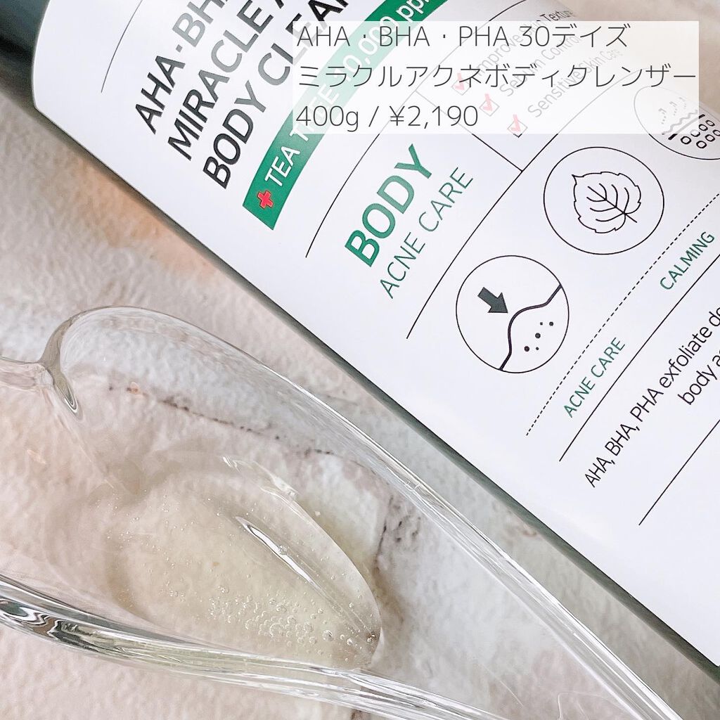 すべすべで柔らかい肌を作ってくれるというボディクレンザー🧚🏻♀️ 乾燥によるカサカサとした角質や、冬に出番が多くなるヒートテックでの背中のムレによるボディトラブルに適しているそう💕 ニキビ肌ケア機能成分であるBHA、肌のキメを整えて角質をケアしてくれるAHA、マイルドな角質ケアで角質を柔軟にしてくれるPHAも配合✨ なめらかな洗い心地が気持ちいい🫧 すっきりするような洗い上がりでしたが、つっぱる感じはなかったです💠
