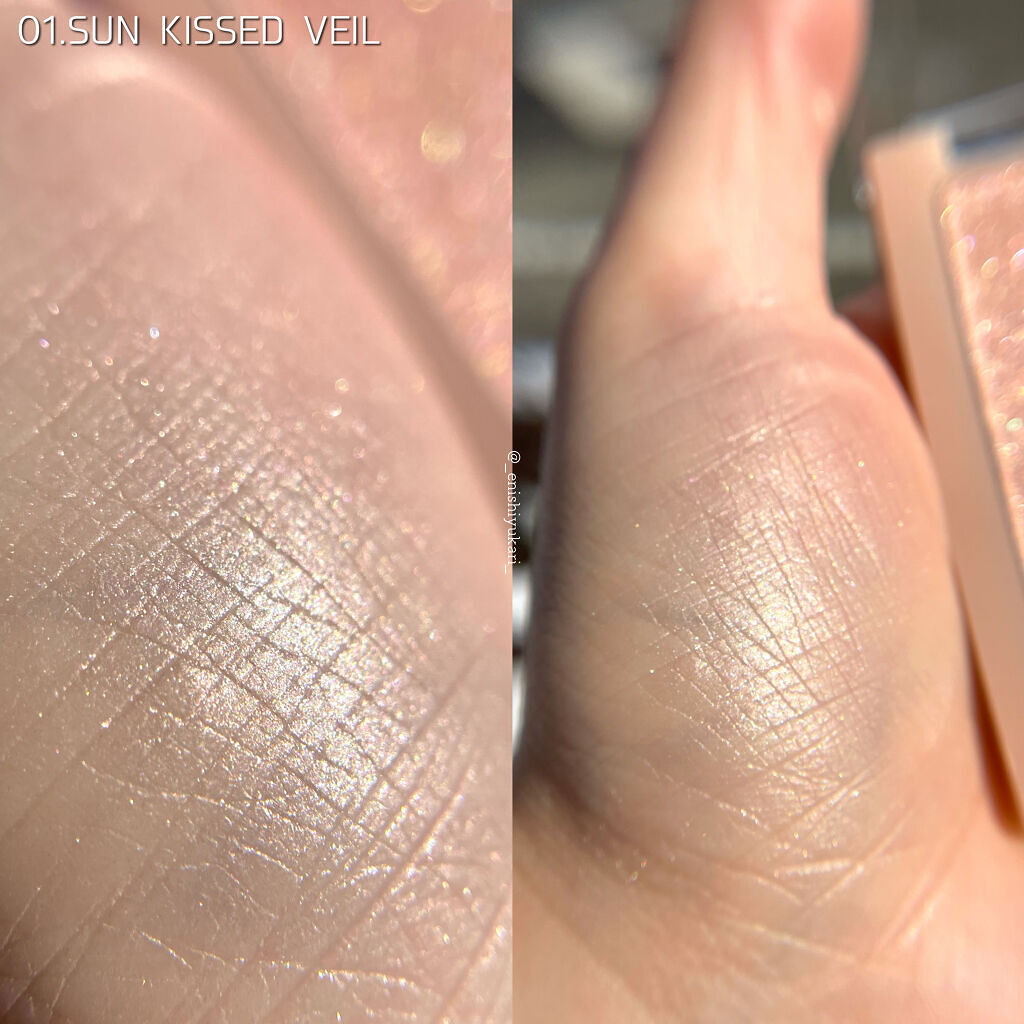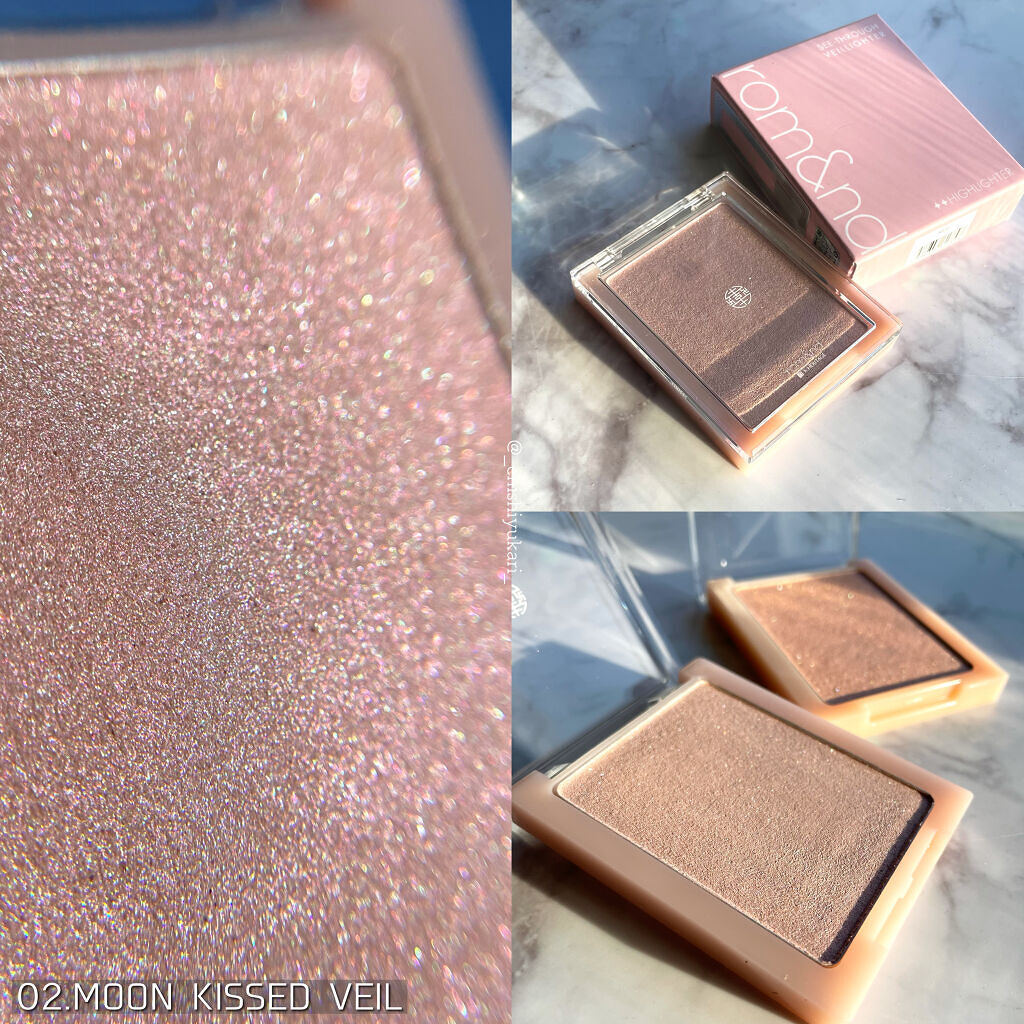 ロムアンドのハイライト完全に見逃してたんだけどこれキラッキラで可愛すぎた...♡⚜️rom&ndシースルーヴェールライター02ムーンキスドベールサラッとした粉質でテカリじゃなく綺麗なツヤっと肌に見せてくれるの本当に好き...結構大きめでたっぷ...