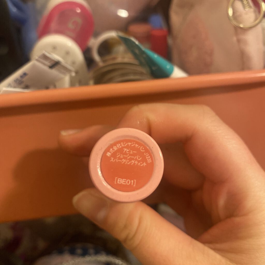 ラメがめちゃくちゃ可愛いA’pieuのジューシーパン スパークリングティント。BE01のときめくイチジクはベースがベージュ系のナチュラルカラーでゴールドやホワイト系のラメが入っています! 普段から濃いめのリップが好きな方は物足りないと感じると思うので、こちらを全体的に塗った上に内側に濃いめのリップ塗ってもとても可愛く仕上がります🫶🏻 ティント効果もあって、ティッシュオフするとツヤ感は失われるものの色とラメはしっかり残ります!