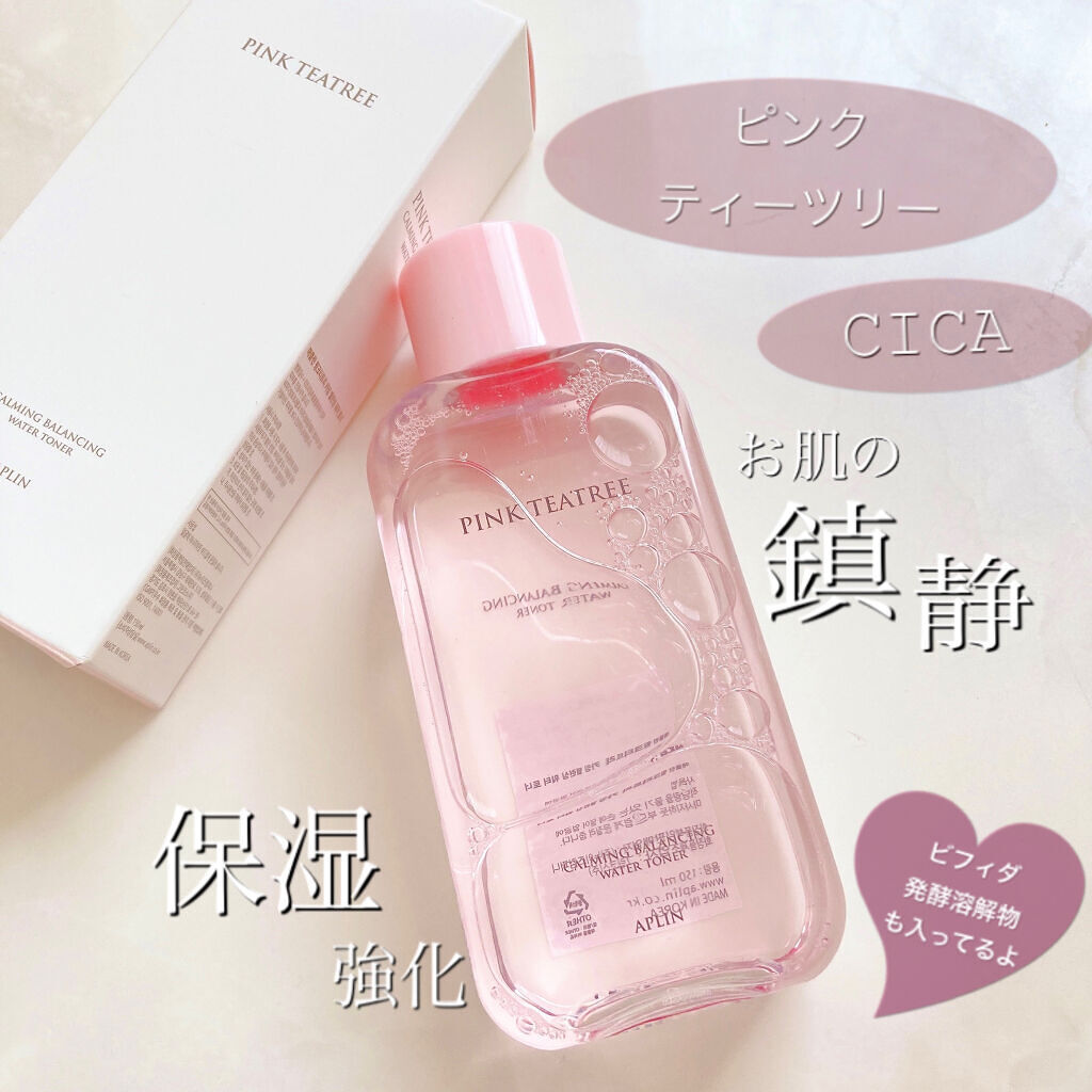 APLINピンクティーツリートナーピンクツリー&シカ成分➡️素早い鎮静効果ビフィダ発酵ろ過&発酵溶解物➡️ニキビ等で荒れた肌を健康的に保湿強化➕鎮静ビタミンB12成分がピンク色を持つビタミンの1つなのでピンク色は有害な人口色素は使用❌さっぱり...