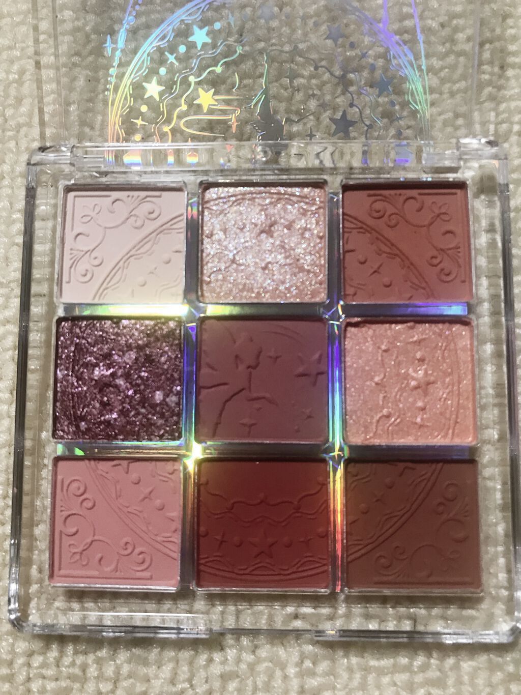 パッケージの上蓋がウォーターシールみたいにスパンコールが揺れ動くオシャレな作りで、オシャレなデザインなのが魅力。 ラメがめちゃくちゃかわいいしマットカラーの発色がえげつないのよ。 落ち着いた色合いのマットカラーも入ってるから意外と普段メイクにも使えちゃうというね。