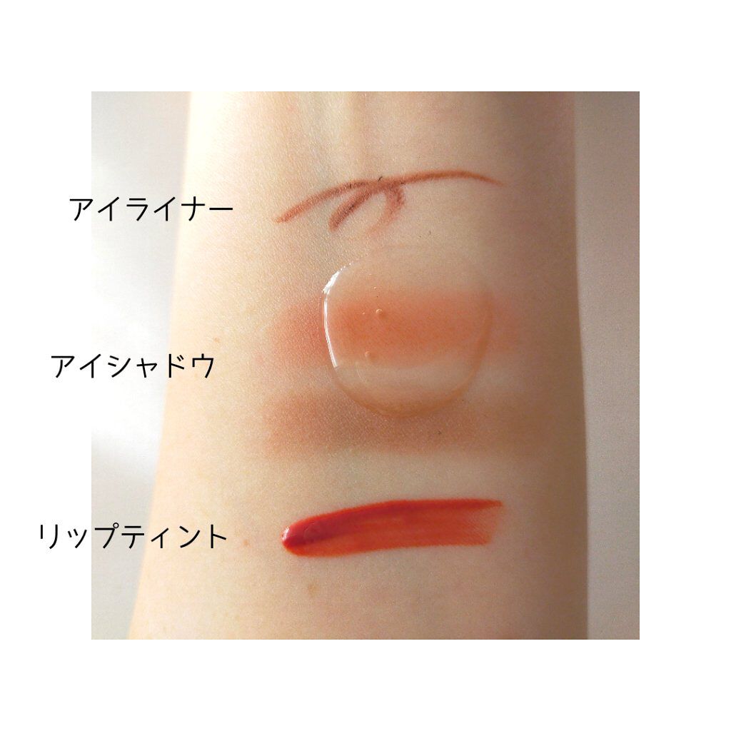 水っぽいテクスチャーのティントです。唇にのせるとうるうるツヤツヤになります。 ティッシュオフしてもカラーが残っているのでマスクメイクにもおすすめ! しっとり感もあるので冬でもつけてます。 #03ブリック リバーはオレンジ、ブラウンが少し入ったような落ち着きのある赤みなので大人リップにもいい感じです。