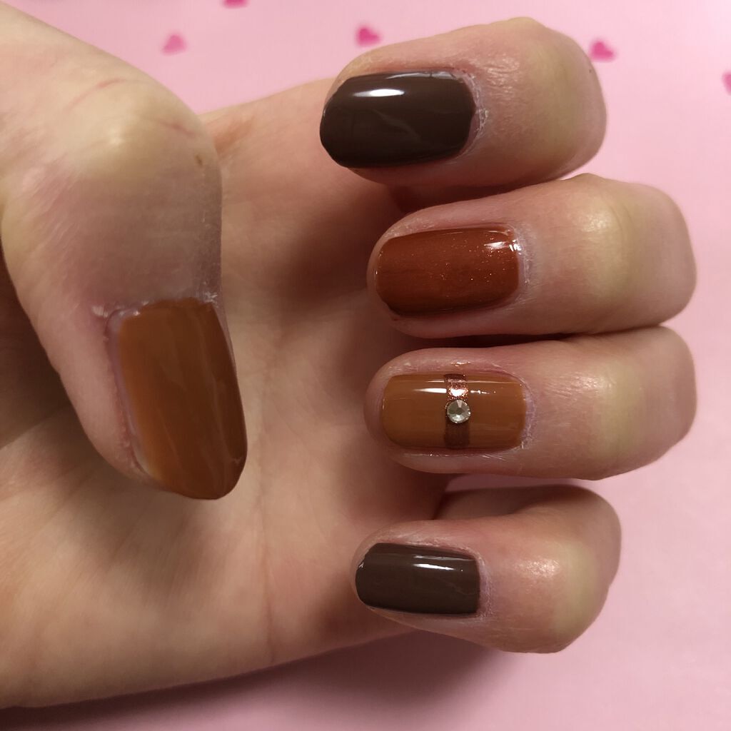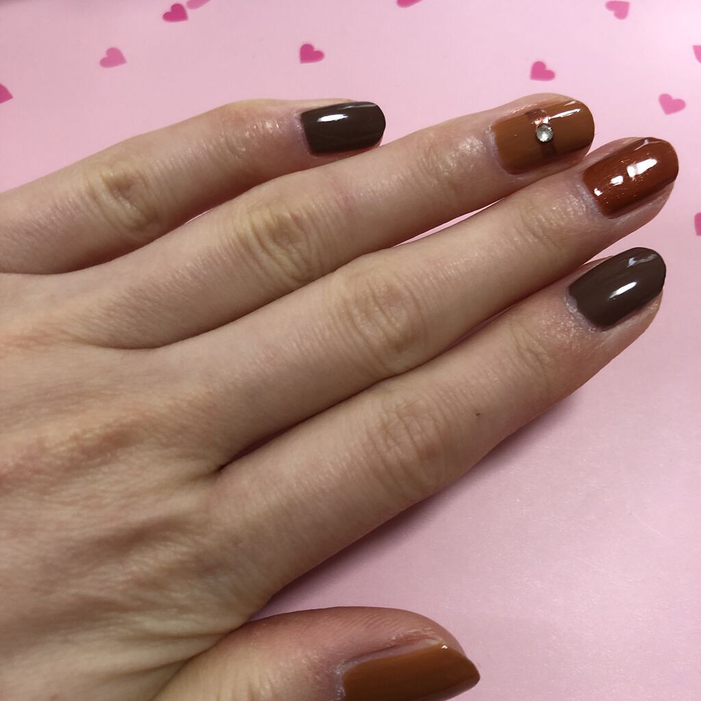 【秋カラー】キャンメイクおすすめ左からキャンメイクカラフルネイルズN15チョコレートシロップN16ココアN17クリームチャイN36ビターキャラメルN55チャイティーラテ#秋ネイル...