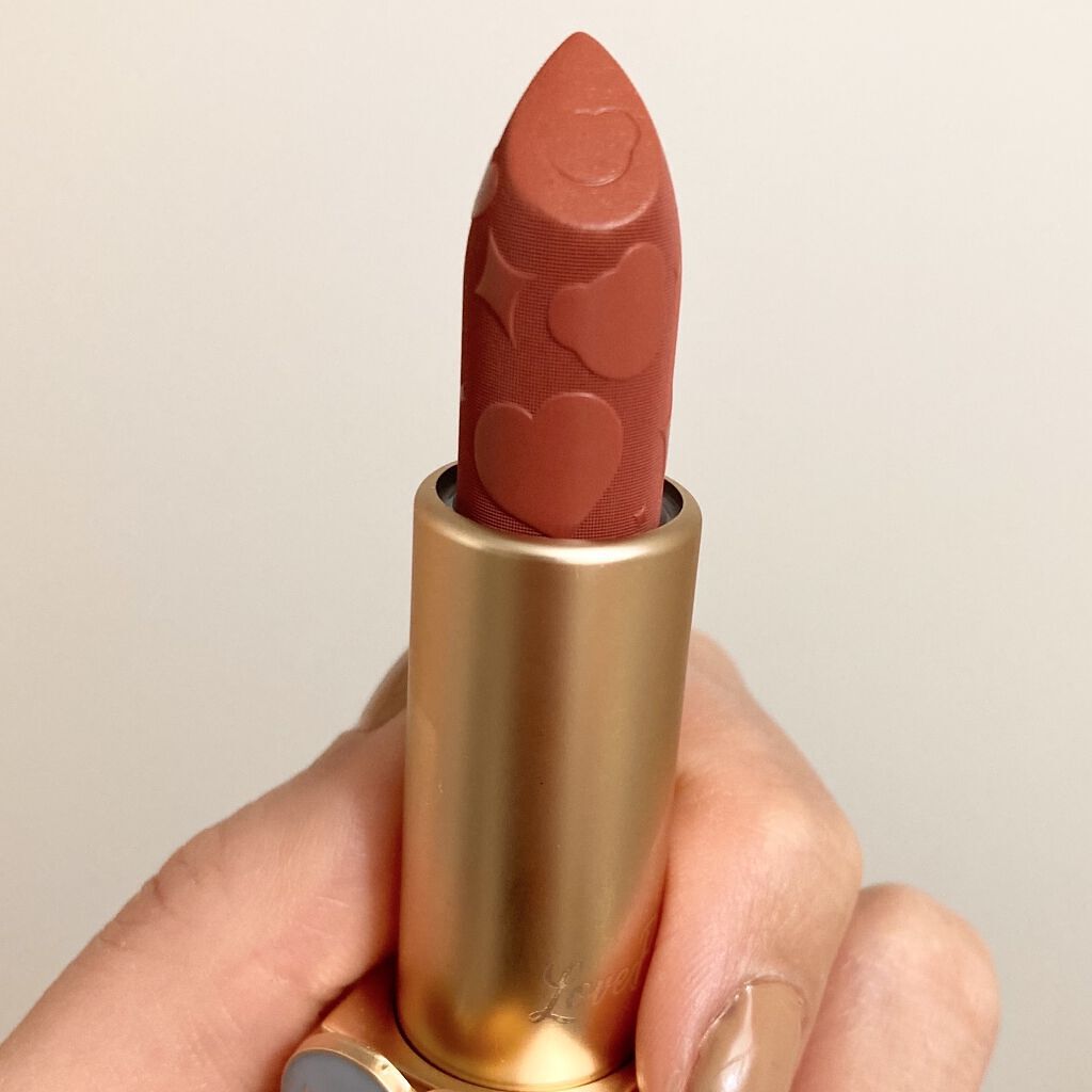 パケが可愛すぎてずっと見れちゃうし、リップスティック自体にもハートなどの刻印がされていて キュートかつレトロ感があり可愛い🧸✨ マグネットタイプなので、 蓋をスティックに近づけると ぱちっと引っ付いてくれます◎ マットタイプは しっかり見たままの発色で マットなのにスルスル塗れます🥺❤️ 全く引っかかる感じがなく滑らか◎ ツヤタイプは ほどよいツヤ感で、しっかり見たままの発色で スルスル塗れます🥺❤️ 全く引っかかる感じがなく滑らか◎ 私イエベが特に気に入ったのは、 コーヒーベア、ミルキーチェスナッツベアです!!普段使いしやすく場所を 選ばないのがいいですね🥰