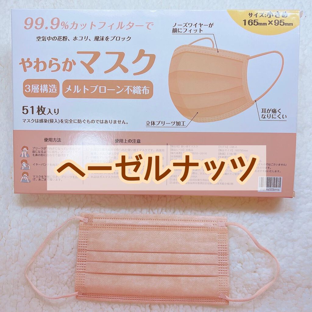 マスクくらいおしゃれに気分に合わせて変えたいなといつも色んなピンクのマスクを買っています!! このマスクはずっと愛用しているもので、耳も痛くならないし、一般的な大人用サイズ(横幅17.5㎝)より少しだけ小さいサイズで、私はちょうどいいです! 平ゴムなので、耳が痛くならないので長時間でも付けていられます! 今回は、チェリーブロッサム、オールドローズ、ヘーゼルナッツ、ベビーピンクの4種類を買いました✨✨ 不織布のマスクがやはり1番安心するので、私はマスク時代になってからもずっと不織布のマスクを使ってます😷 私はこのマスクで色々な色をつけながらマスク生活を少しでもプラスに思えるように使っています✨✨