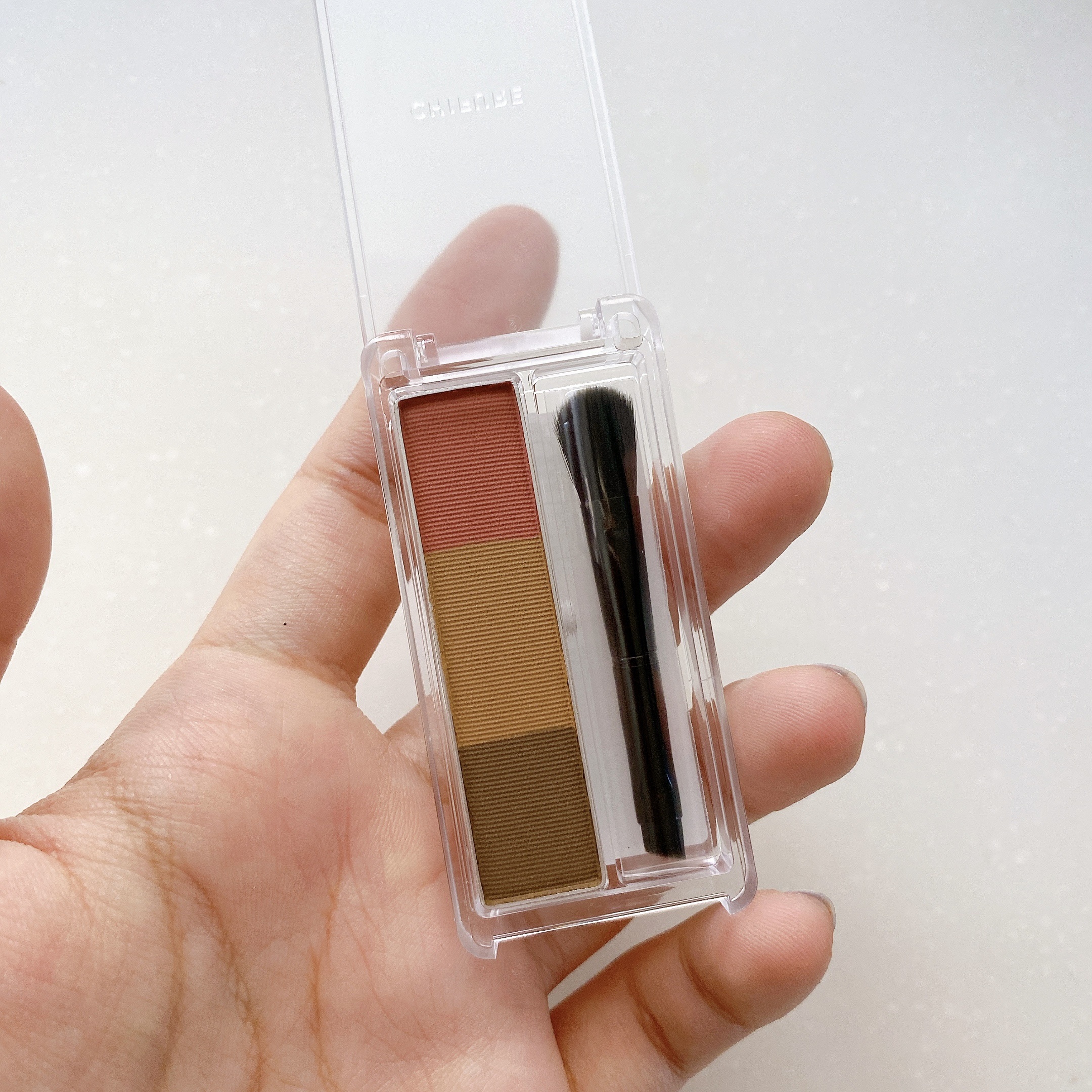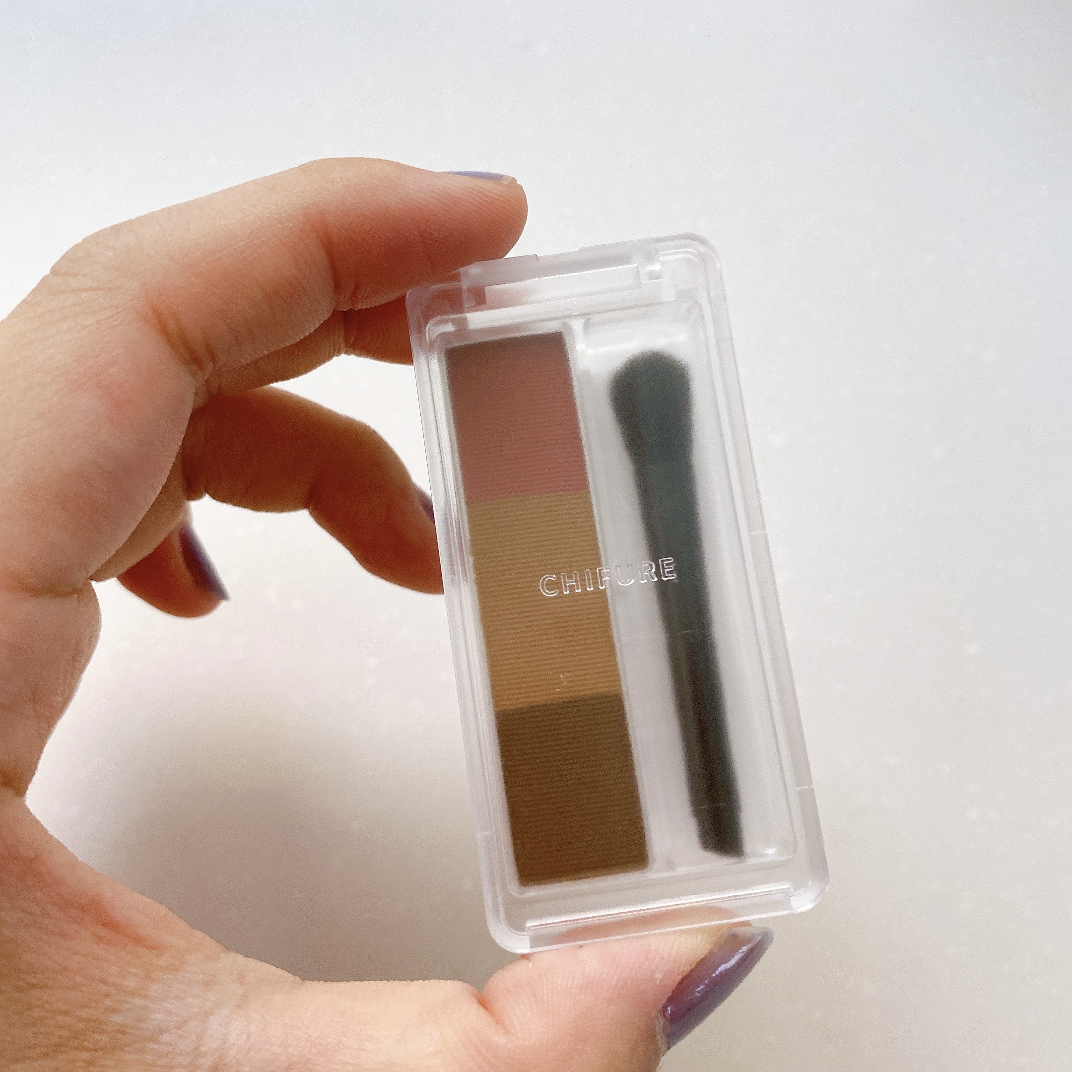 ちふれらしいシンプル&コンパクトなパッケージ。これがいいんだよね〜🥰笑 眉山〜眉尻にブラシ(細)で濃いブラウンを、眉頭〜眉山にブラシ(太)で真ん中カラーをのせます。 ふんわりとした発色でやさしい印象に。良かったです!