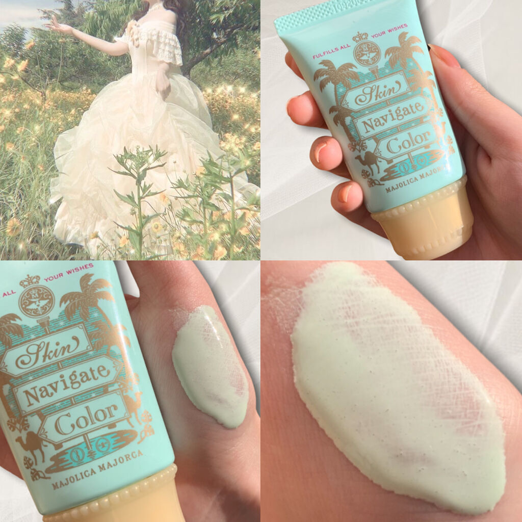 みずみずしくて肌補正も素晴らしい下地✨️ MAJOLICA MAJORCA スキンナビゲートカラー コーラルピーチ ¥1,320 テクスチャはゆるっゆるでオールインワンジェルくらいな勢いでみずみずしくて、乾燥しない。ヨレやすくもない。 このコーラルピーチはわたしの頬にしつこくあるソバカスをめっちゃごまかして補正してくれる!