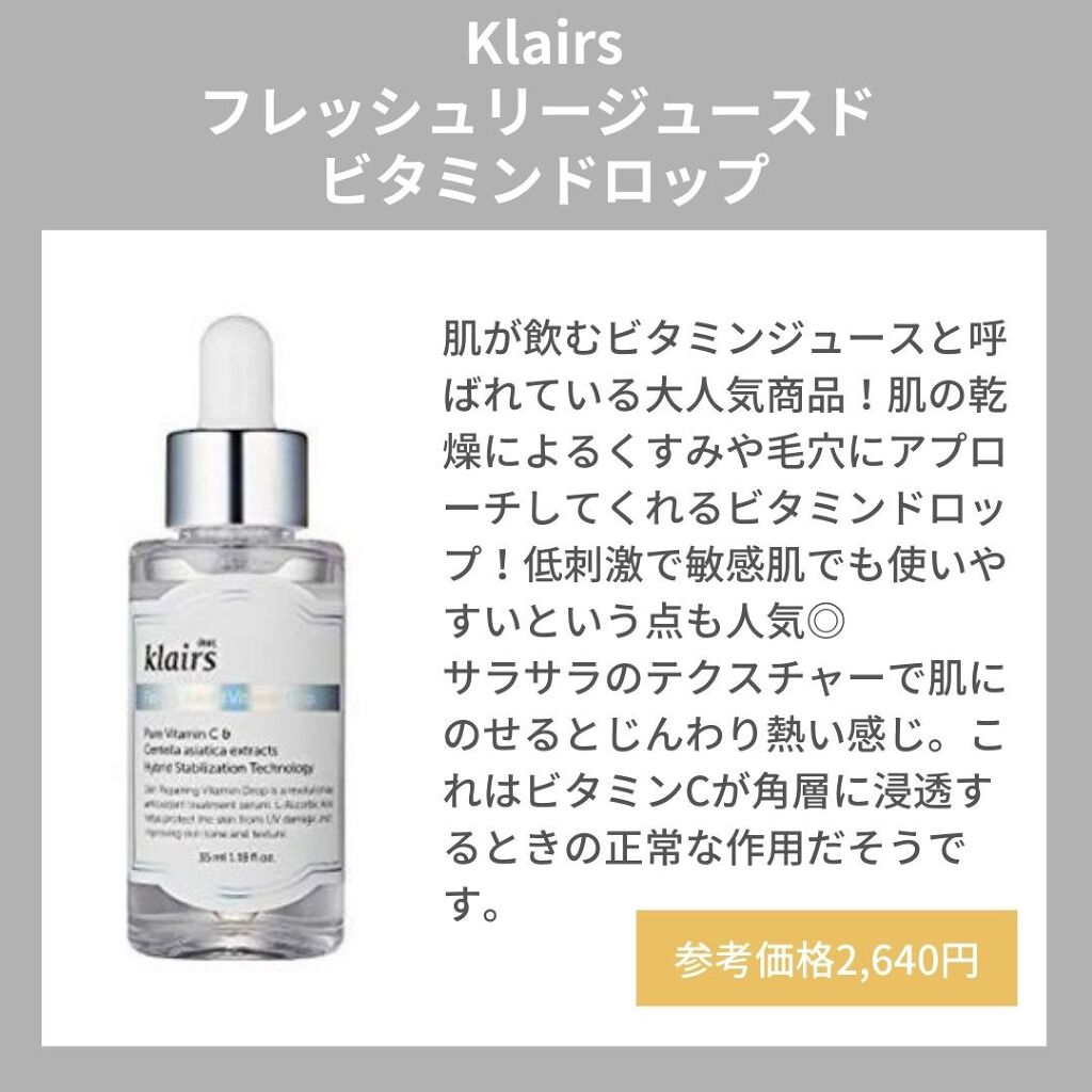 スキンケアどれ買うか迷ってる人はとりあえず美容液買っておこう✊🏻 Klairs フレッシュリージュースドビタミンドロップ 魔女工場 ガラクナイアシン2.0エッセンス