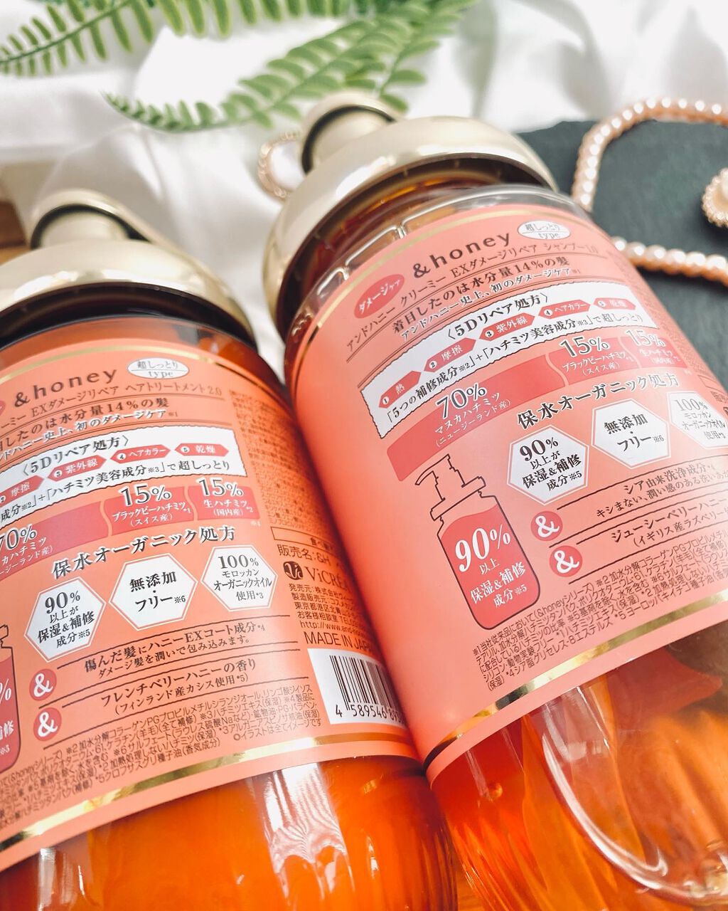 \甘い香りの癒し時間🍯💕/あの、&honeyから新ラインが😍✨今回はその中のヘアオイルを試してみました🌼\&honey初のダメージケア商品♡/∇@andhoney_japan▶︎EXダメージリペアヘアオイル¥1400-[税抜]なんと!90%以...