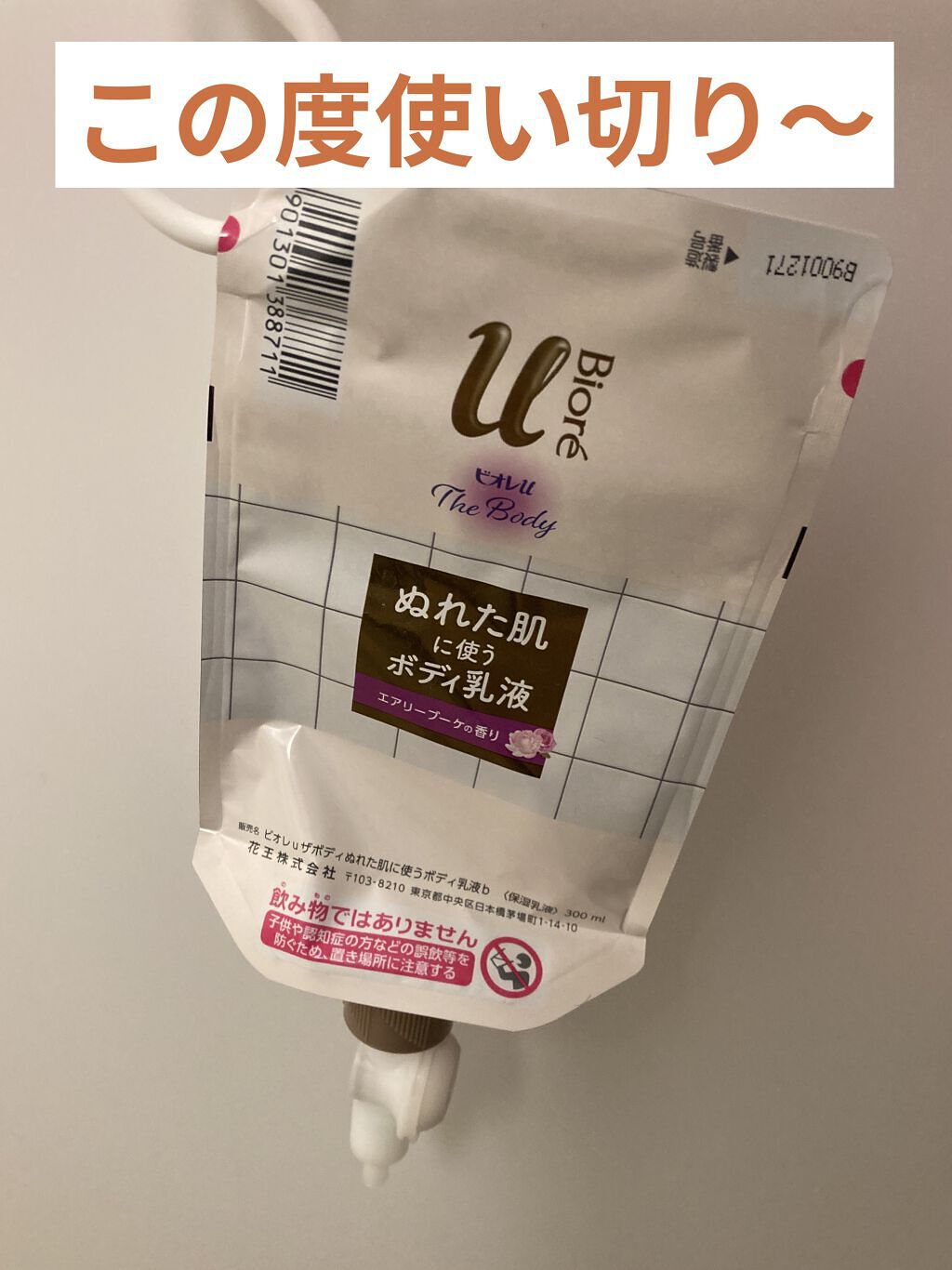 - 肌が乾燥する前に、お風呂の中でぬれたままスーッと一気にボディケア! うるおい閉じ込めたもっちり肌ざわり続く。お風呂の中でつりさげて、立ったまま使えるつりさげパックは、置き場所をとらず、衛生的に、ムダなく使い切れる。 軽い力でカンタン液量調整できる、らくらくスイッチ採用。 ○顔までしっとり保湿 ○弱酸性 ○素肌のバリア機能の働きを補い、肌を保護する ○エアリーブーケの香り