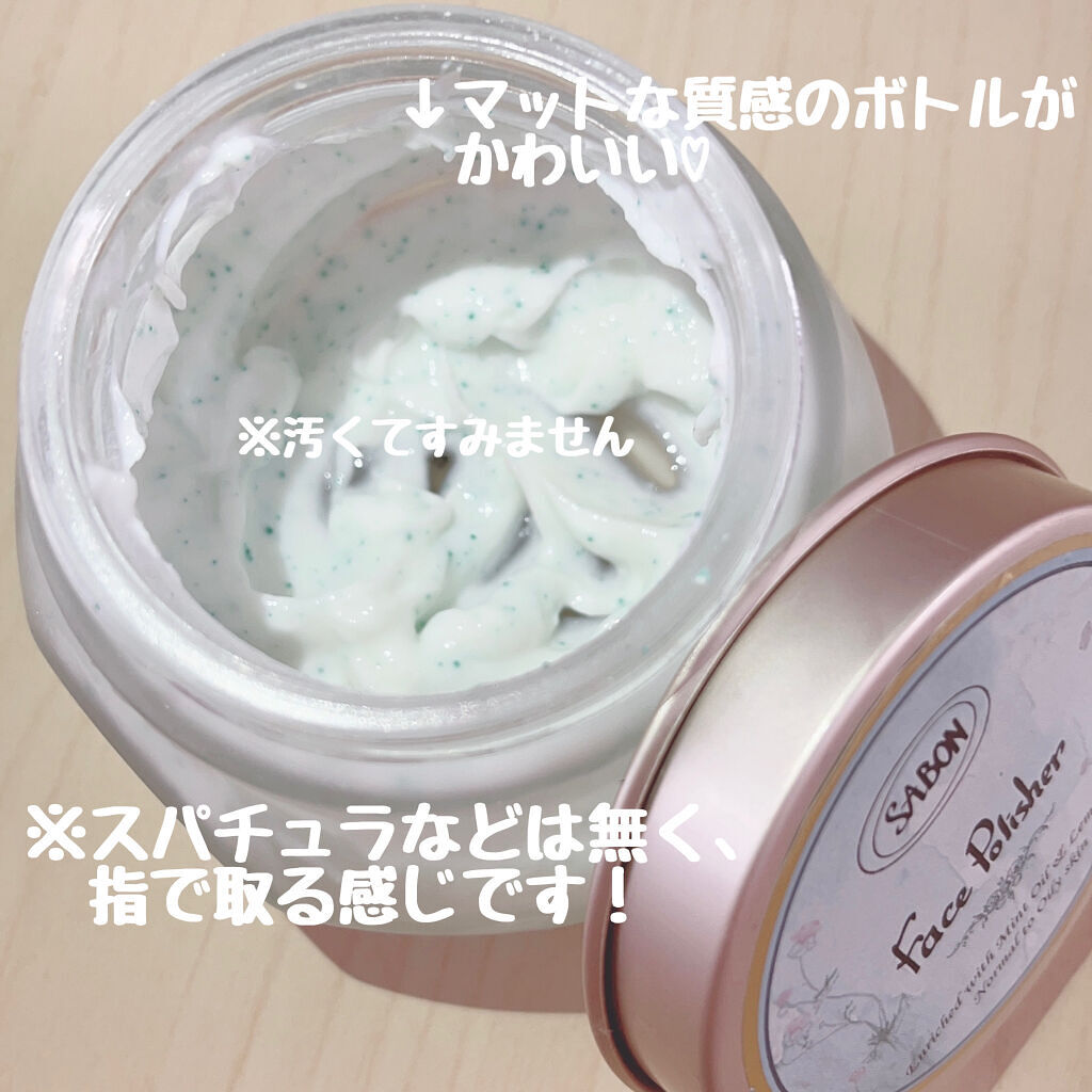 SABONフェイスポリッシャーリフレッシングミントミントはかなりスースーした使い心地で歯磨き粉感が強かったですスクラブなので目の周りは避けてますが目にもスースー感じました細かいスクラブがたくさん入ってるのかなと思ってたのですが結構大きめでジャ...