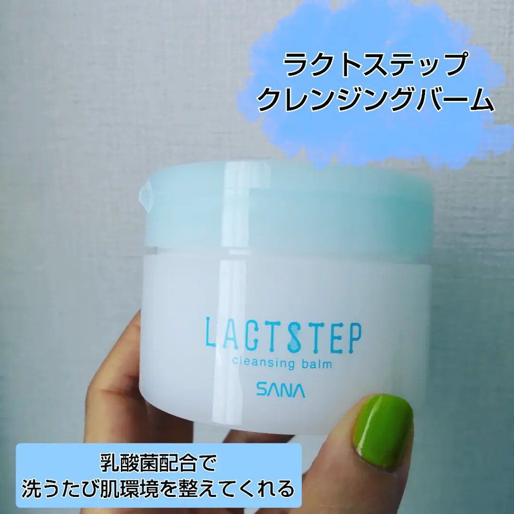 サナ「ラクトステップ クレンジングバーム」💕ブルーグリーンの外観がさわやか✨美肌菌に着目したクレンジングバームです💓ラ・フローラEC-12乳酸菌を配合し、うるおいを保つすこやかな美肌に導きます✨汚れ落ちのよさはさすがバーム‼️‼️バームをのば...