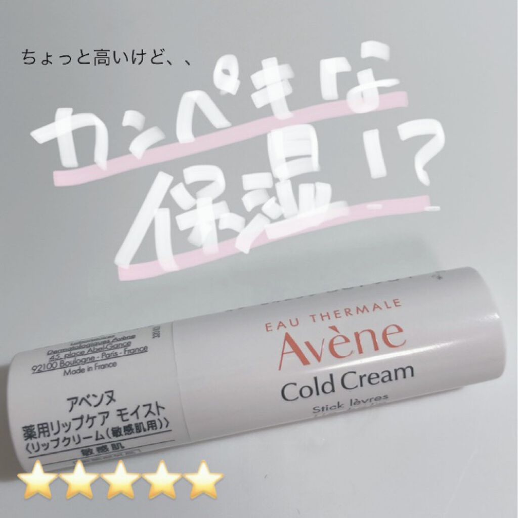 - アベンヌの「コールドクリーム成分」とは、アベンヌ温泉水と、ミツバチが分泌した天然油分成分、ミツロウを配合した 保湿効果の高いクリーム成分。唇の表面にラップを作り、保湿成分や有効成分をしっかり閉じ込め、乾燥・刺激からあれがちな唇をガードします。 敏感な唇に負担をかけないよう、10種の成分に絞りました。無香料、無着色、アルコール(エタノール)フリー、防腐剤フリー、低刺激処方で、心地よくお使いいただけます。