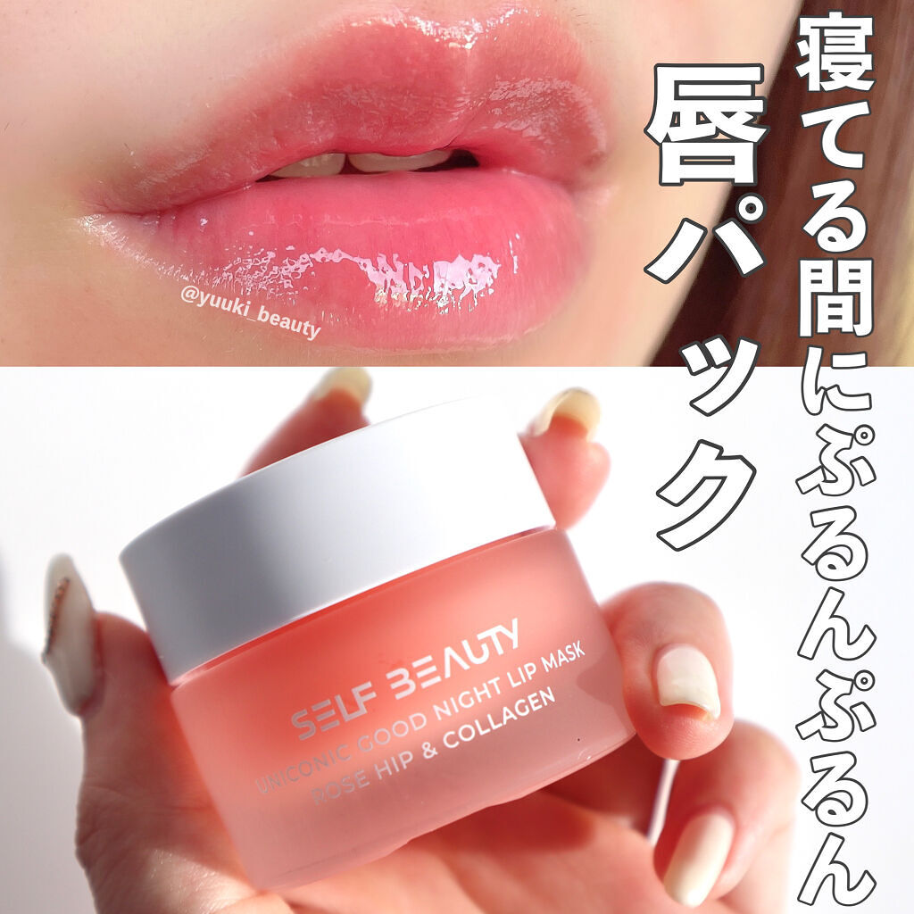 SELFBEAUTYのユニコーングッドナイトリップマスク ローズヒップ&コラーゲン🤍お試しさせていただきました🥰しっとりもちっとした仕上がりになります♡この商品は唇が割れたり敏感な唇の人はより差を感じられるそう🥺私はまさに乾燥しやすい唇なので...