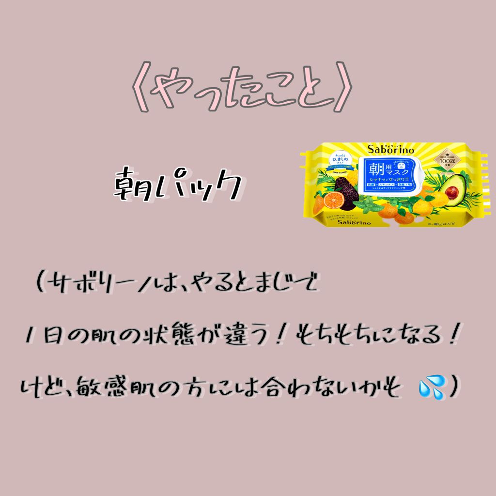 1分でケアできるサボリーノを購入してみました!これがあれば、忙しい時もパックを挫折せずできます! 想像以上にスースーするので、冬は寒いかもしれませんが、1分で楽にスキンケアできちゃうのは最高です😃 着けた後→スースーしますがさっぱりしたかんじになります!洗顔の役目もあるので、目が覚める感じです!