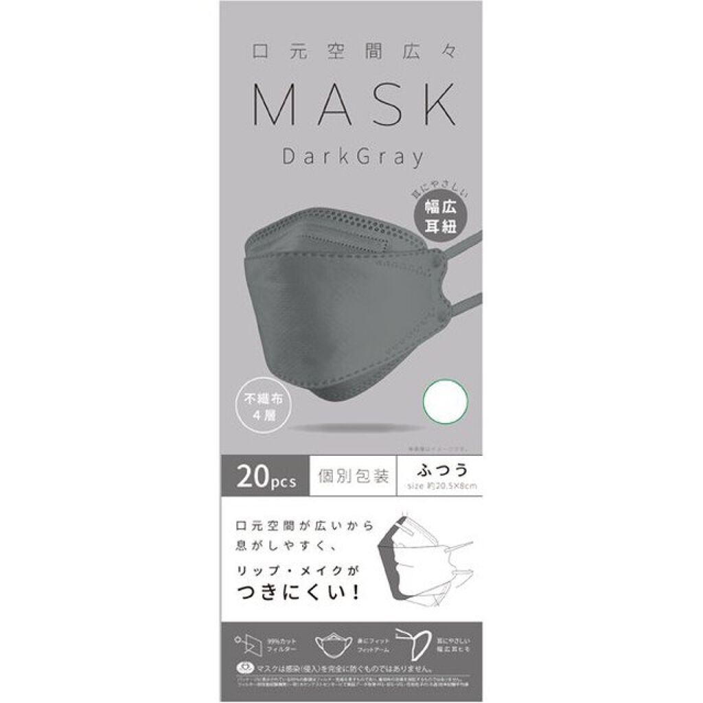 - KF94タイプの立体形状不織布マスク。4層構造でこだわりのフィルター性能と、ハリのある生地感で口元の空間をしっかりキープします。6mm幅広耳紐で耳が痛くなりにくい。JIS規格適合。全国マスク工業会会員製品。