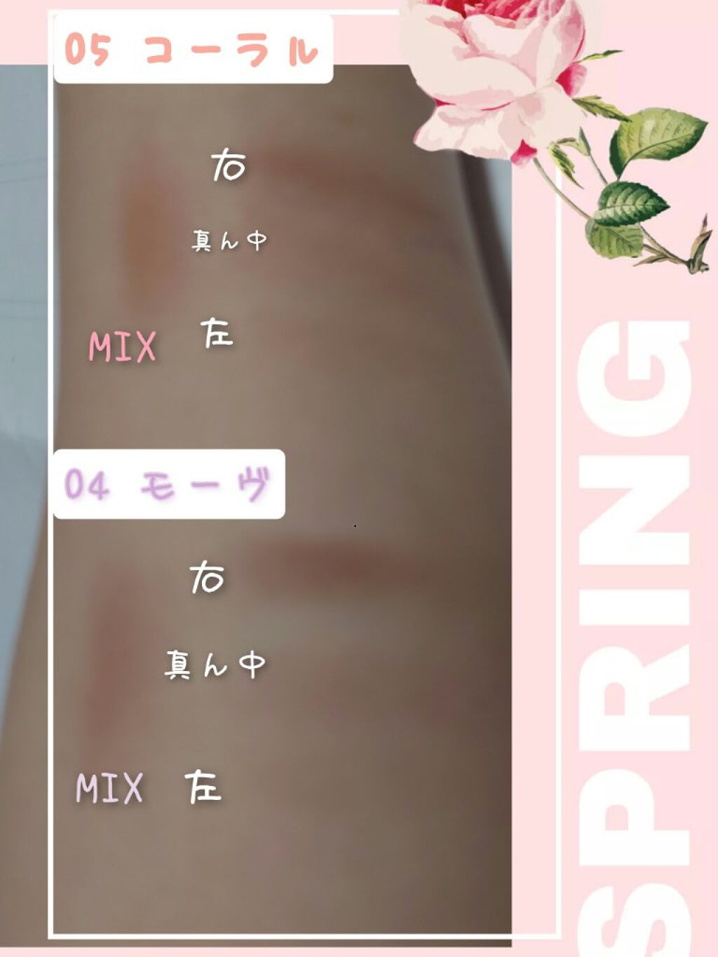 マットはチップタイプで、もけもけの少し細めのチップブラシ。 塗り心地はスルスルっと塗れて、ぼかすのも簡単でした。 濃淡もつけやすく、1度塗りだと血色感のある赤系。重ねれば深みのあるけど1滴ピンクが入った赤系。 マットなので、保湿は必須かなぁ🤔 マスクにはつきますが、色持ちはいい◎ティッシュで拭き取っても色残りしてました!