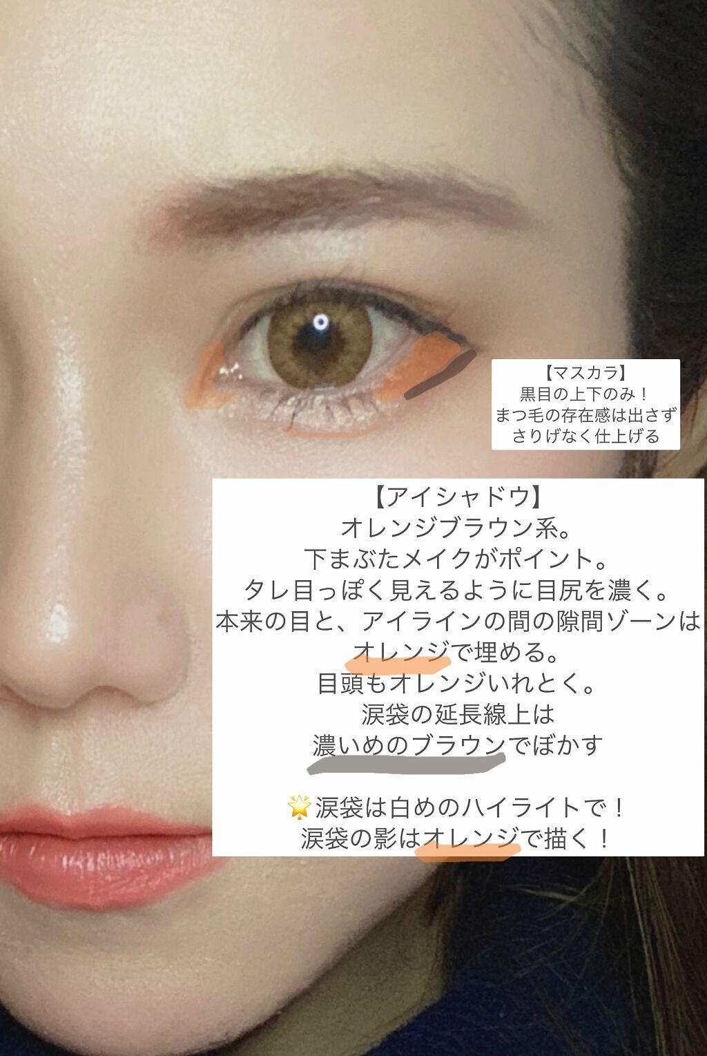 特にラメのコーラルオレンジ?が優しい色で下まぶたメイクにぴったり✨ 推しカラーです💓🍊 下瞼はゴールドラメとオレンジラメを使っています☻ ラメも、ギラギラでもチラチラ光る系でもなく… セミマットっぽいサテンの様な光り方をするので、品よく仕上がります パールとラメの中間のような 珍しい仕上がり! 発色はいいですがマットは色自体が控えめなので お仕事メイクにもオススメです♥