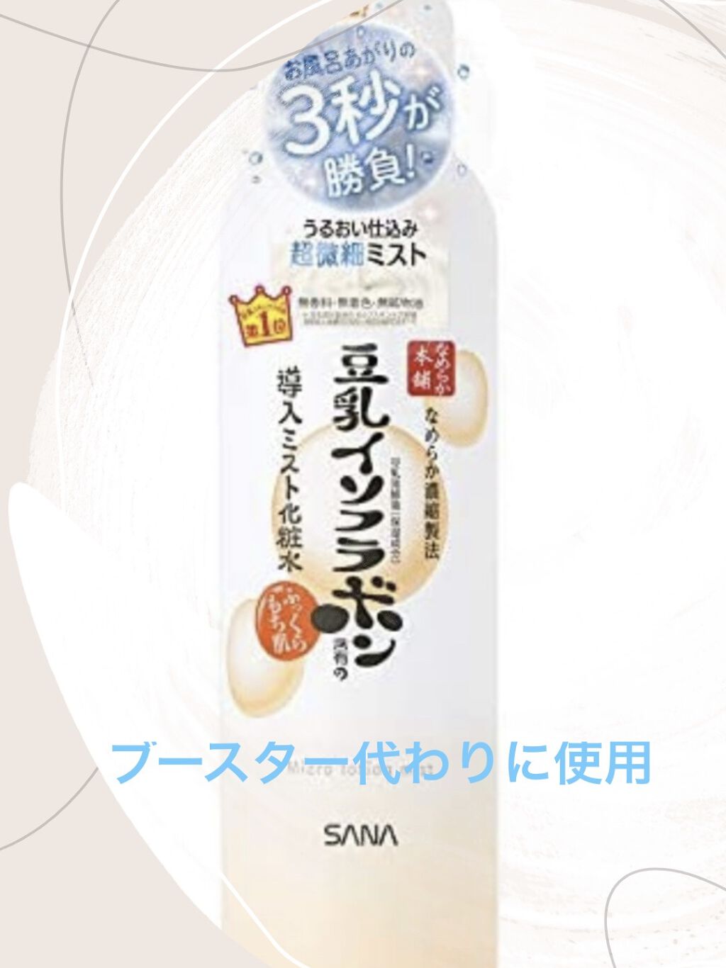【使った商品】なめらか本舗 豆乳イソフラボンミスト化粧水N【商品の特徴】ふっくらもち肌、豆乳の導入ミスト化粧水。【使用感】肌あたりが柔らかく気持ちいい【良いところ】スプレーなので朝の洗顔後やお風呂上がりすぐにシュッとできる。その後の化粧水の入...
