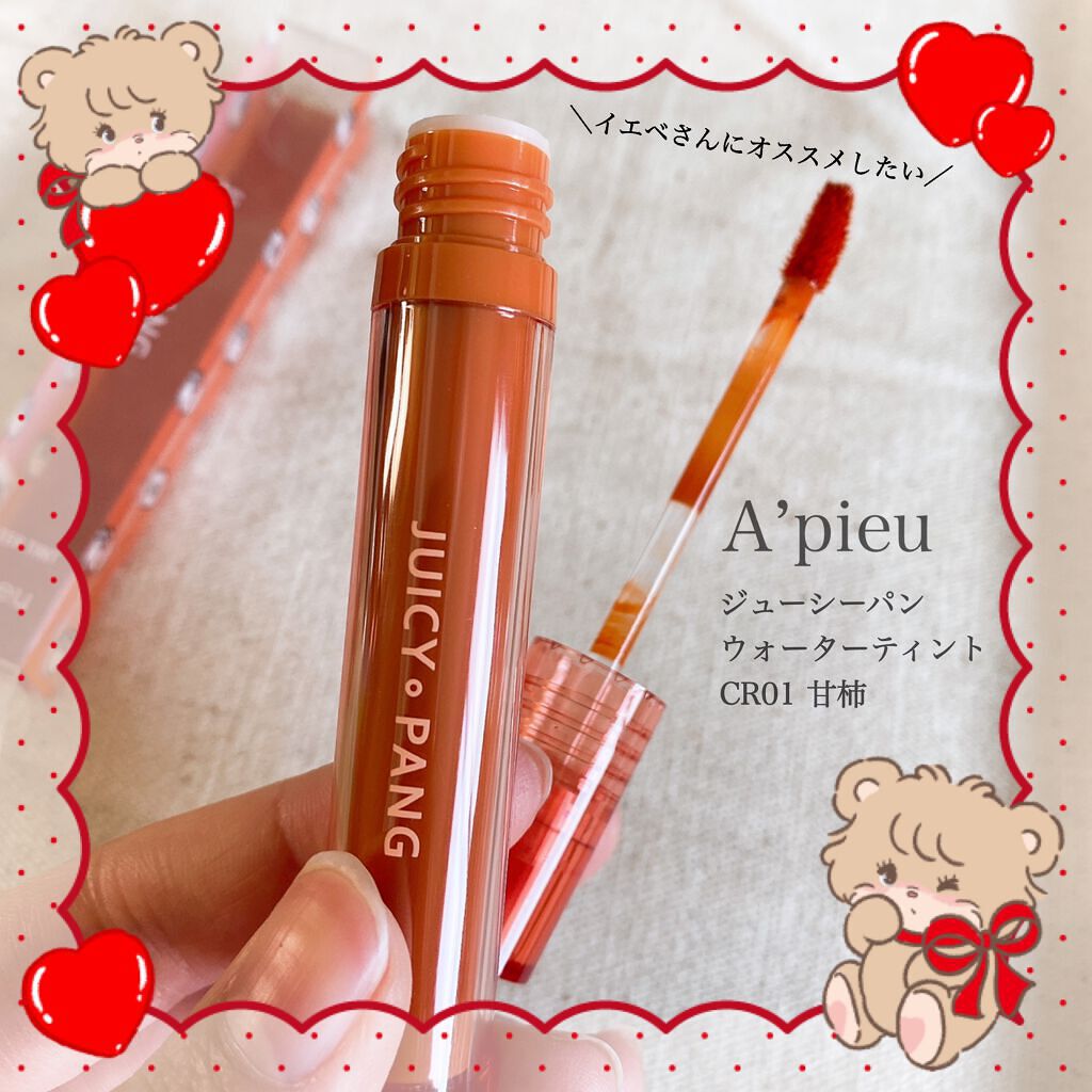 【夏秋メイクに♡甘柿ティント】A’pieuアピュージューシーパンウォーターティントCR01甘柿参考価格1,100円(税込)夏にも使いたい!オレンジみしっかりなブラウンカラー♡熟したあま〜い柿色がジューシーに発色してオシャレ…!!パリッと鮮やか...