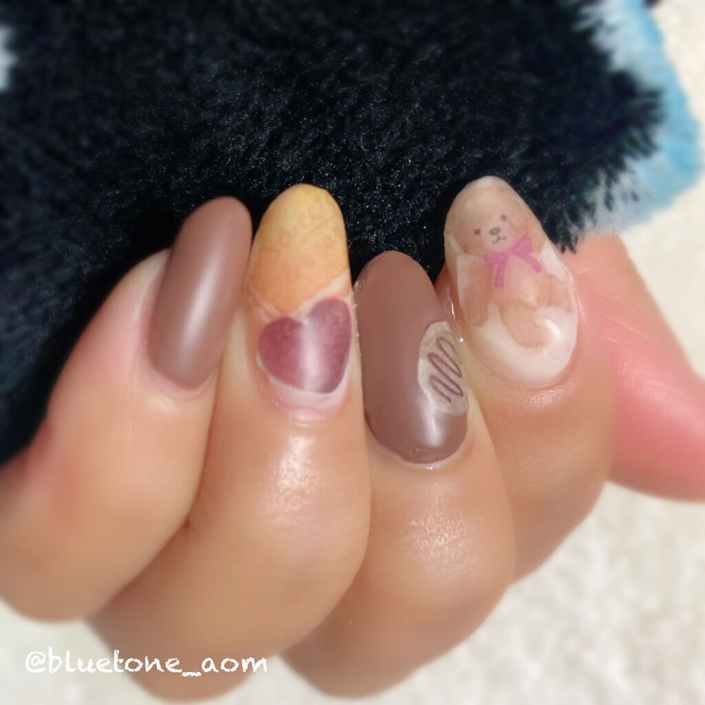 キャンメイク2色で出来る‼︎ バレンタインにおすすめショコラフレンチ💝 人差し指と小指はN75番を2度塗りして根元にハートシールを貼りました🥰 少しでも参考になれば嬉しいです♥️