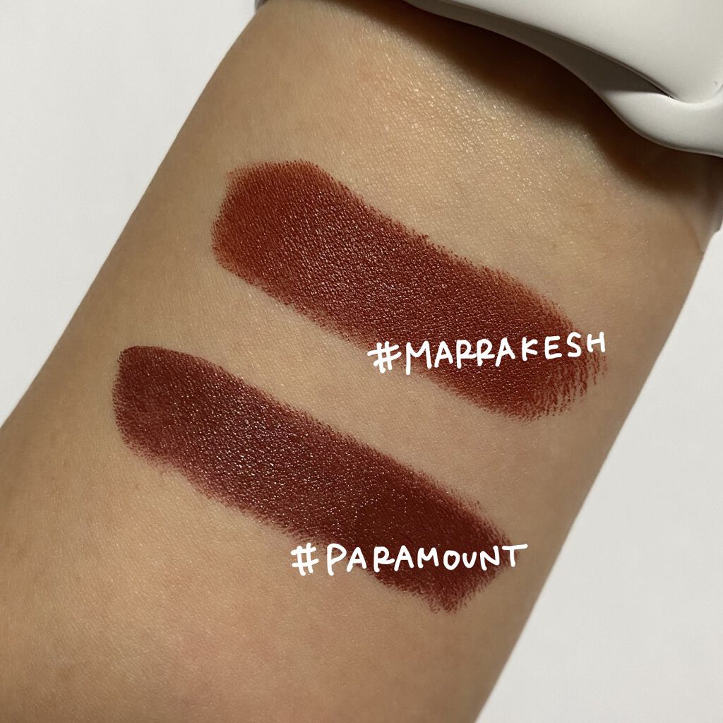 マラケシュは色はハッキリしているのに浮かないので今日はマットのベタ塗り😘😘 マキシマルシルキーマットリップスティックはマットだけど乾燥しにくいところが良くて、ベタ塗りするとより乾燥しにくいし、ぼかして塗るよりシワも目立ちにくい🥰 ガツンと発色するマットリップを探している方には是非オススメしたいマキシマルシルキーマットリップスティック😍