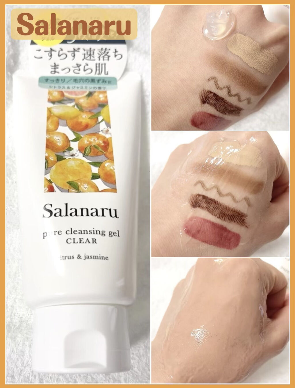 - <Salanaru ピュアクレンジングジェル クリア> 水、ペンチレングリコール、BG、グリセリン、ソルビトール、スクワラン、セイヨウハッカ葉エキス、ライム果汁、レモン果皮油、トリエチルヘキサノイン、サンザシエキス、パルミチン酸イソプロピル、アスコルビルリン酸Na、アルテロモナス発酵エキス、ヒマワリ種子油、オレンジ油、トリ(カプリル酸/カプリン酸)グリセリル、トリイソステアリン酸PEG-20グリセリル、グレープフルーツ果皮油、ミリスチン酸イソプロピル、クリスマムマリチマムエキス、レモン果汁、グレープフルーツ果実エキス、オレンジ果汁、ナツメ果実エキス、リンゴ果実エキス、マデカッソシド、糖脂質、サーファクチンNa、プルーン種子油、アボカドエキス、マルトデキストリン、ジャスミン油、シトルスメジカブルガリス果皮油、イロハモミジ葉エキス <Lee Izumida コラボパッケージ> 水、ペンチレングリコール、BG、グリセリン、ソルビトール、スクワラン、セイヨウハッカ葉エキス、ライム果汁、レモン果皮油、トリエチルヘキサノイン、サンザシエキス、パルミチン酸イソプロピル、アスコルビルリン酸Na、アルテロモナス発酵エキス、ヒマワリ種子油、オレンジ油、トリ(カプリル酸/カプリン酸)グリセリル、トリイソステアリン酸PEG-20グリセリル、グレープフルーツ果皮油、ミリスチン酸イソプロピル、クリスマムマリチマムエキス、レモン果汁、グレープフルーツ果実エキス、オレンジ果汁、ナツメ果実エキス、リンゴ果実エキス、マデカッソシド、糖脂質、サーファクチンNa、プルーン種子油、アボカドエキス、マルトデキストリン、ジャスミン油、シトルスメジカブルガリス果皮油、イロハモミジ葉エキス