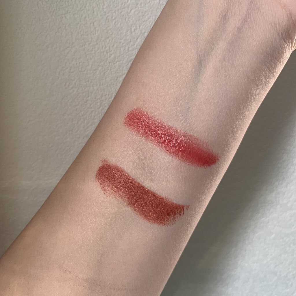セルヴォークのヌードモカが黄味も赤みもくすみもちょうど真ん中でした。 質感全然ちがうしどれもおすすめです💄 唇に付けるとヌードモカは中間色な感じなのですが、スウォッチの写真だとホッジポッジのが色味が近い気がしました! ホッジポッジのが暗めでグレー味がある気がします。