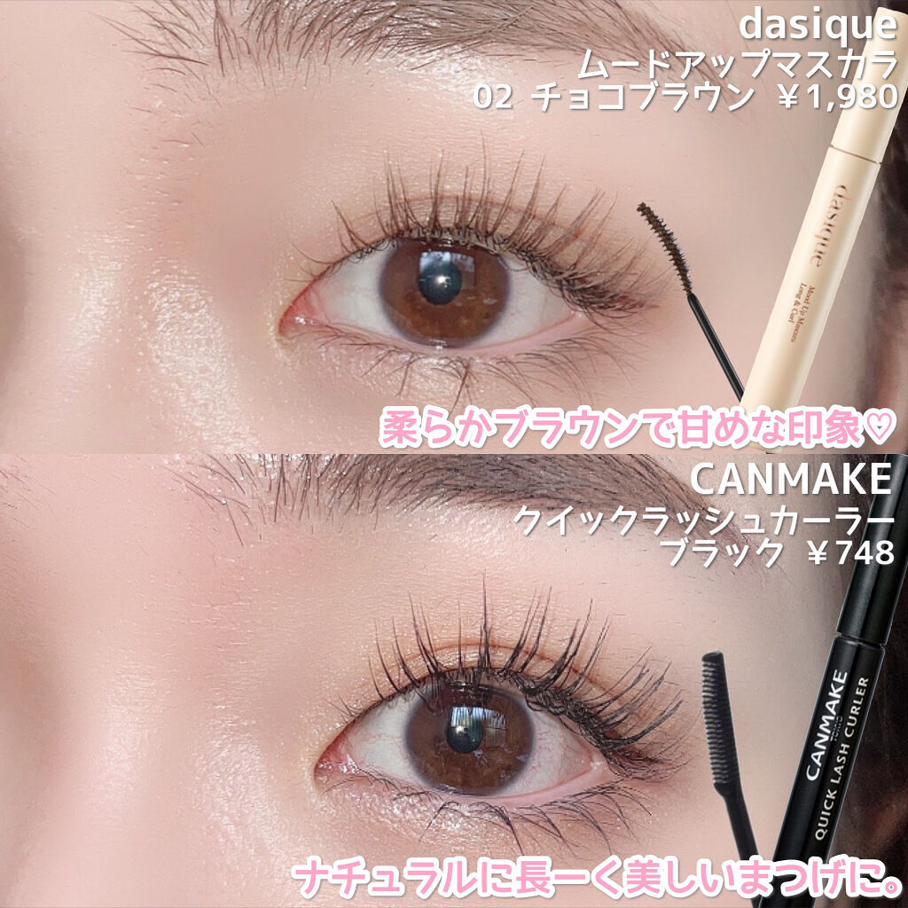 まつげカールキープ&アップを実現 「マスカラ下地」「トップコート」「マスカラ」として1本3役で使える!! 瞳をぱっちりにしてくれる まつ毛の悩みをこの1本で全て叶えてくれるのがCANMAKEのクイックラッシュカーラーです❣️ オススメ度★★★★★ナチュラルメイク好きさんにオススメ! オススメ度★★★★★マスカラといえばブラックですね! オススメ度★★★★★優しい目元に仕上げたい方にオススメ💕 オススメ度★★★★☆メイク上級者さん向けのマスカラ! パープル×レッドとぱきっとしたカラー同士なのでワインモーヴもインパクトのある目元にしたい方にはオススメ💕 オススメ度★★★★☆オレンジメイクなどカラーメイク好きさんには必須のマスカラかなと思います!🧡 マスカラなのに¥1,000でお釣りが返ってくるとはやっぱりCANMAKEはすごい。