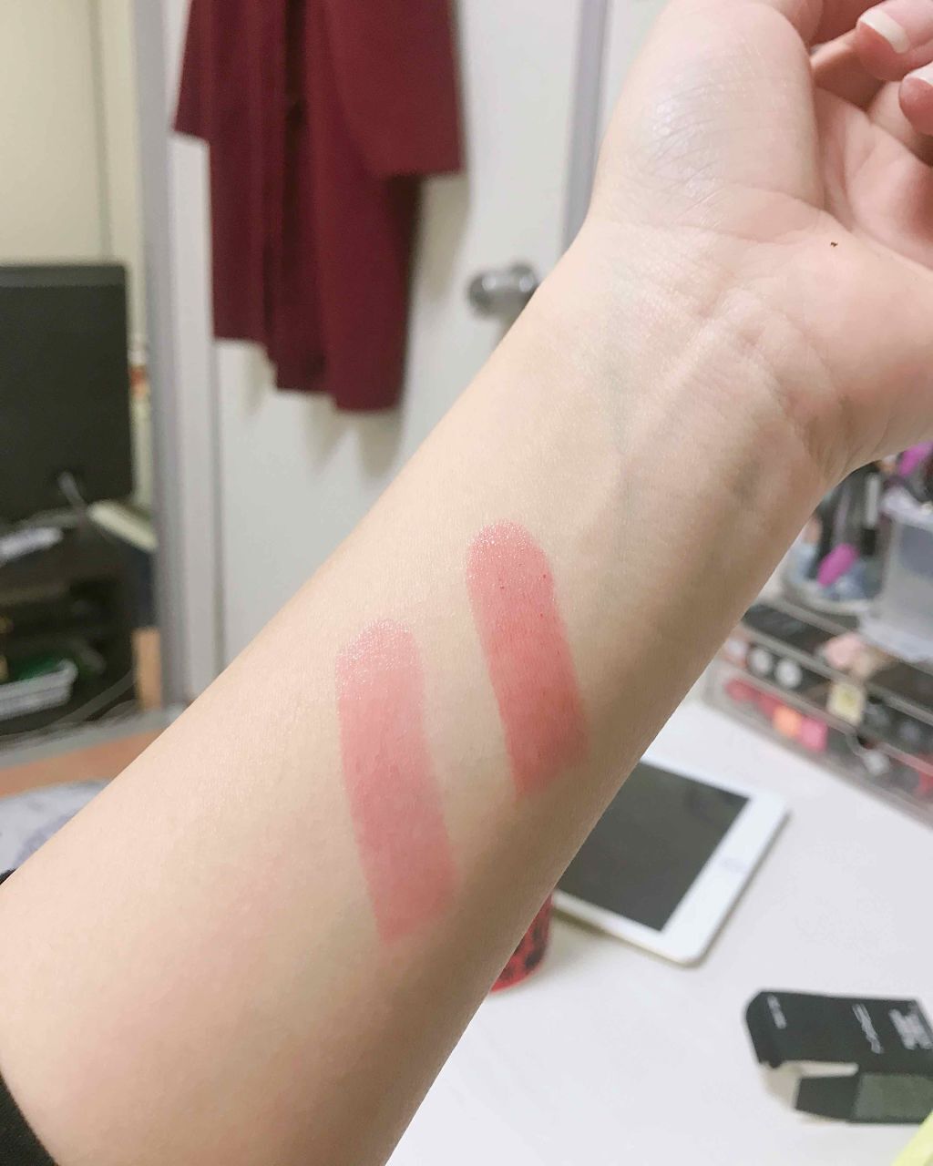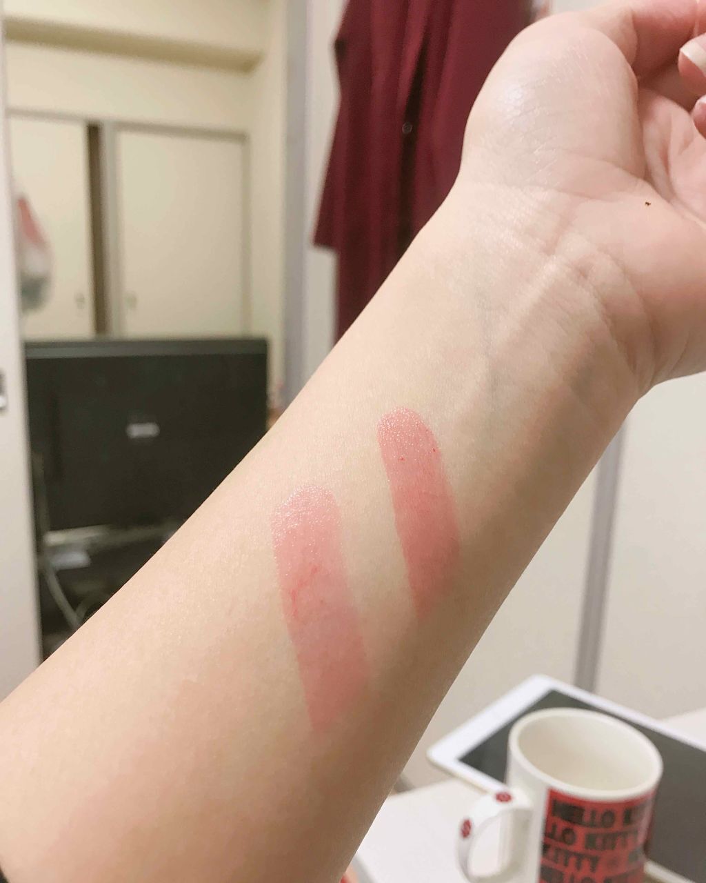 💓ロレアルパリユイルカレス💓オレンジ🍊ピーチ🍑2枚目スウォッチ画像です右側がオレンジ、左側がピーチ☺️有名なユイルカレス!!私も大好きです!!!色展開が豊富で全色集めたくなります(。◠‿◠。)♡塗り心地はベタベタせずサラッとしててオイルっぽい...