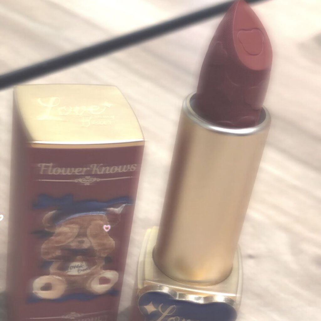 秋にぴったりなマットリップ!💋🍁FlowerKnowsLoveBearマットリップスティックチョコレート?のいい香りがします🍫発色はめちゃくちゃよくて、落ちにくい印象!とにかくパケがかわいい🧸🤎...