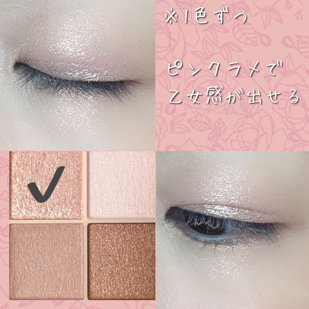 ピンクブラウンがとてつもなく可愛いです。単色でも使えるのがすごいいい。これひとつでめちゃ可愛くなれます。指でさささっと塗るだけでも綺麗に仕上がるので時短メイクとかに重宝すると思う。