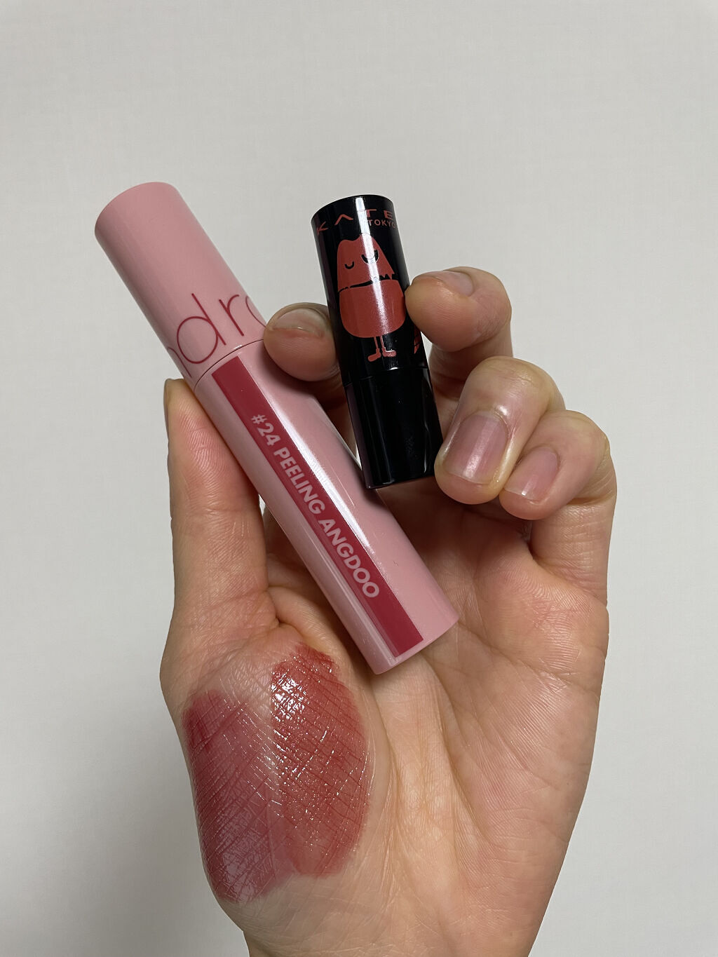 これはブルベ夏優勝カラーですね💕︎茶ピンクというか、ブラウン苦手ブルベでもいけるカラー。 リップモンスターもジューシーラスティングティントも、たっぷりのせないと乾き気味なんですよね自分。 グリグリ塗っても色濃く出ないそして落ちないリップが欲しいです。