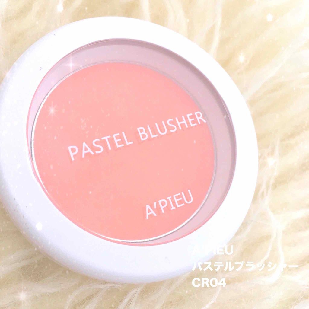 A'PIEU(オピュ)パステルブラッシャーCR04これは去年くらいかな?に買って好きすぎて毎日使ってます(¨̮)︎︎❤︎︎(学校がある時以外笑)私的に少しオレンジの強いピーチピンクって感じの色です🍑✨この色がイエベの私にはたまらなく合う色で(...
