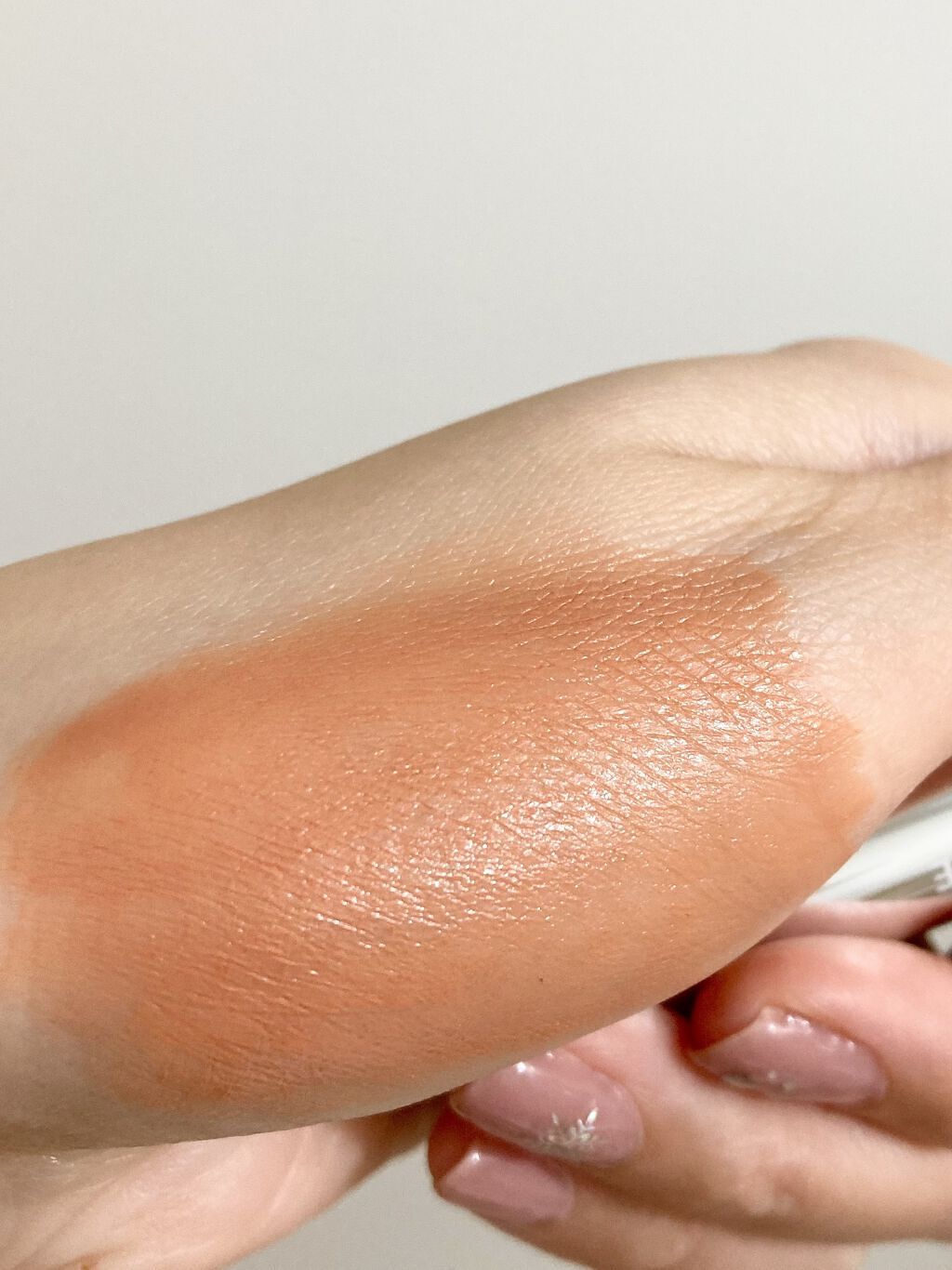 このチークは「激安!ポンポン買える!」という値段ではなく、これまではセザンヌの400円のチークや100均のものばかり買っていました。笑 まず淡めのカラーなので、つけすぎてド派手になるということがなく適当に塗るだけでいい感じに!笑 色味も肌馴染み抜群です! 特にイエベさん向きかと思いますが、ブルベさんにも合うと思います。 スウォッチですが、私の肌色だと馴染みすぎて分かりにくいので多めにつけてます!