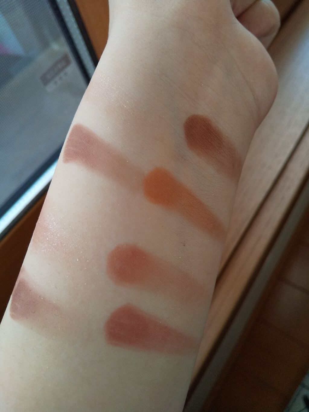 スフレのような粉質!なので密着してくれているように感じました(*´∀`)♪ 安くて可愛い(๑♡∀♡๑) ラメが綺麗✨ マット質感が好きな人には神😇 自分にはピンクが合わなかった... イエベ向き、というレビューが多かったため、期待を膨らませて買ってみたものの腫れぼったく見えてしまうかな... 恐らく右下の強いピンクが犯人(←?)なので、その子以外の色でうまく使いたいところ!