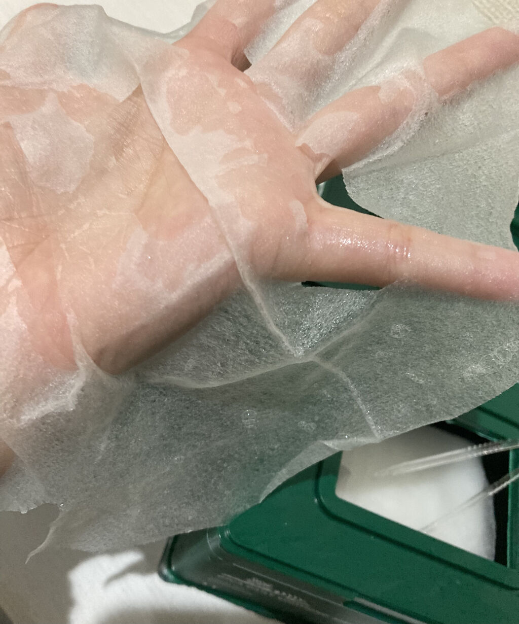 乾燥肌のため普段、クリーム系のパックを使うことが多いので、こちらはさっぱり&しっとりな使用感だと感じました。 透明なジェルっぽい美容液がたっぷりで、ガーゼ?のようなシートで顔からずれ落ちることがありません。 パック後は水分がしっかりチャージされた感じです。乾燥肌の私でも十分の保湿力◎ 何よりお安い(DHOLICで一枚66円)し、刺激も無いので普段使いにぴったりです。 美白効果はそこまで感じられませんでした。 これ一つでものすごい肌が変わった!というような感動は無かったので星四つ⭐️