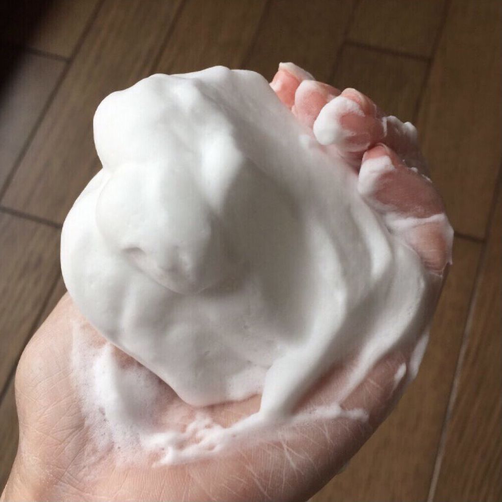- 泡立てネットとソープをこすり、きめ細かなリンゴ1個分の泡を立てるためにご使用ください。