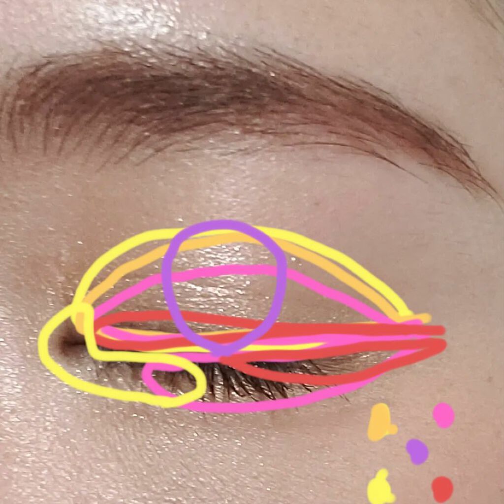 グランバルの白ラメ最初にぬったらピンクラメがちらちらしてるのめだってとってもかわいかった🥺 イエローのアイシャドウとブルーのラインがとってもかわいい! 青すぎないのがとてもよい🥺