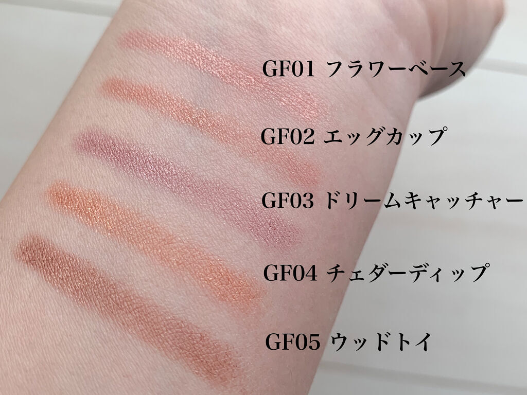 - <GF01 フラワーベース> チルトリメチコン、トリメチルシロキシケイ酸、合成フルオロフロゴパイト、ポリエチレン、ジフェニルシロキシフェニルトリメチコン、(アクリレーツ/アクリル酸ステアリル/メタクリル酸ジメチコン)コポリマー、リンゴ酸ジイソステアリル、キャンデリラロウ炭化水素、マイクロクリスタリンワックス、スクワラン、セラミドNP、セスキイソステアリン酸ソルビタン、トコフェロール、水添ヒマシ油、ホウケイ酸(Ca/Al)、マイカ、黄4、酸化チタン、酸化鉄、赤202 <GF02 エッグカップ> メチルトリメチコン、合成フルオロフロゴパイト、トリメチルシロキシケイ酸、ポリエチレン、リンゴ酸ジイソステアリル、ジフェニルシロキシフェニルトリメチコン、(アクリレーツ/アクリル酸ステアリル/メタクリル酸ジメチコン)コポリマー、キャンデリラロウ炭化水素、マイクロクリスタリンワックス、スクワラン、セラミドNP、セスキイソステアリン酸ソルビタン、トコフェロール、水酸化Al、水添ヒマシ油、ホウケイ酸(Ca/Al)、マイカ、黄4、酸化スズ、酸化チタン、酸化鉄、赤201 <GF03 ドリームキャッチャー> メチルトリメチコン、トリメチルシロキシケイ酸、合成フルオロフロゴパイト、ポリエチレン、リンゴ酸ジイソステアリル、ジフェニルシロキシフェニルトリメチコン、(アクリレーツ/アクリル酸ステアリル/メタクリル酸ジメチコン)コポリマー、キャンデリラロウ炭化水素、マイクロクリスタリンワックス、スクワラン、セラミドNP、セスキイソステアリン酸ソルビタン、トコフェロール、水添ヒマシ油、シリカ、グンジョウ、ホウケイ酸(Ca/Al)、マイカ、酸化チタン、酸化鉄、赤202 <GF04 チェダーディップ> メチルトリメチコン、合成フルオロフロゴパイト、トリメチルシロキシケイ酸、ポリエチレン、ジフェニルシロキシフェニルトリメチコン、(アクリレーツ/アクリル酸ステアリル/メタクリル酸ジメチコン)コポリマー、リンゴ酸ジイソステアリル、キャンデリラロウ炭化水素、マイクロクリスタリンワックス、スクワラン、セラミドNP、セスキイソステアリン酸ソルビタン、トコフェロール、水添ヒマシ油、ホウケイ酸(Ca/Al)、マイカ、酸化スズ、酸化チタン、酸化鉄 <GF05 ウッドトイ> メチルトリメチコン、合成フルオロフロゴパイト、トリメチルシロキシケイ酸、ポリエチレン、ジフェニルシロキシフェニルトリメチコン、(アクリレーツ/アクリル酸ステアリル/メタクリル酸ジメチコン)コポリマー、リンゴ酸ジイソステアリル、キャンデリラロウ炭化水素、マイクロクリスタリンワックス、スクワラン、セラミドNP、セスキイソステアリン酸ソルビタン、トコフェロール、水酸化Al、水添ヒマシ油、ホウケイ酸(Ca/Al)、マイカ、酸化チタン、酸化鉄 <GF06 ワイングラス> 合成フルオロフロゴパイト、メチルトリメチコン、トリメチルシロキシケイ酸、ポリエチレン、(アクリレーツ/アクリル酸ステアリル/メタクリル酸ジメチコン)コポリマー、ジフェニルシロキシフェニルトリメチコン、リンゴ酸ジイソステアリル、キャンデリラロウ炭化水素、マイクロクリスタリンワックス、スクワラン、セラミドNP、セスキイソステアリン酸ソルビタン、トコフェロール、水酸化Al、水添ヒマシ油、ホウケイ酸(Ca/Al)、マイカ、黄4、酸化チタン、酸化鉄、赤202 <GF09 ランプシェード> メチルトリメチコン、トリメチルシロキシケイ酸、合成フルオロフロゴパイト、合成ワックス、リンゴ酸ジイソステアリル、(アクリレーツ/アクリル酸ステアリル/メタクリル酸ジメチコン)コポリマー、ジフェニルシロキシフェニルトリメチコン、キャンデリラロウ炭化水素、マイクロクリスタリンワックス、スクワラン、セラミドNP、セスキイソステアリン酸ソルビタン、トコフェロール、水酸化Al、水添ヒマシ油、ホウケイ酸(Ca/Al)、マイカ、酸化スズ、酸化チタン、酸化鉄、赤202 <GF10 ブランケット> メチルトリメチコン、トリメチルシロキシケイ酸、合成フルオロフロゴパイト、合成ワックス、リンゴ酸ジイソステアリル、(アクリレーツ/アクリル酸ステアリル/メタクリル酸ジメチコン)コポリマー、ジフェニルシロキシフェニルトリメチコン、キャンデリラロウ炭化水素、マイクロクリスタリンワックス、スクワラン、セラミドNP、セスキイソステアリン酸ソルビタン、トコフェロール、水酸化Al、水添ヒマシ油、グンジョウ、ホウケイ酸(Ca/Al)、マイカ、黄4、酸化チタン、酸化鉄、赤202 <GF11 ビジューリング> メチルトリメチコン、合成フルオロフロゴパイト、トリメチルシロキシケイ酸、合成ワックス、リンゴ酸ジイソステアリル、(アクリレーツ/アクリル酸ステアリル/メタクリル酸ジメチコン)コポリマー、ジフェニルシロキシフェニルトリメチコン、キャンデリラロウ炭化水素、マイクロクリスタリンワックス、スクワラン、セラミドNP、セスキイソステアリン酸ソルビタン、トコフェロール、水酸化Al、水添ヒマシ油、ホウケイ酸(Ca/Al)、マイカ、黄4、酸化