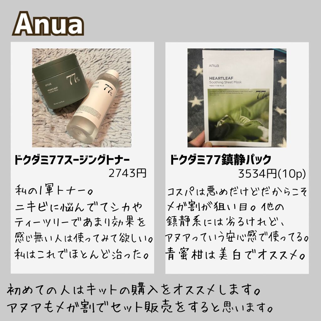 Anua ドクダミ77 % 鎮静マスクパック | 3,960円 |