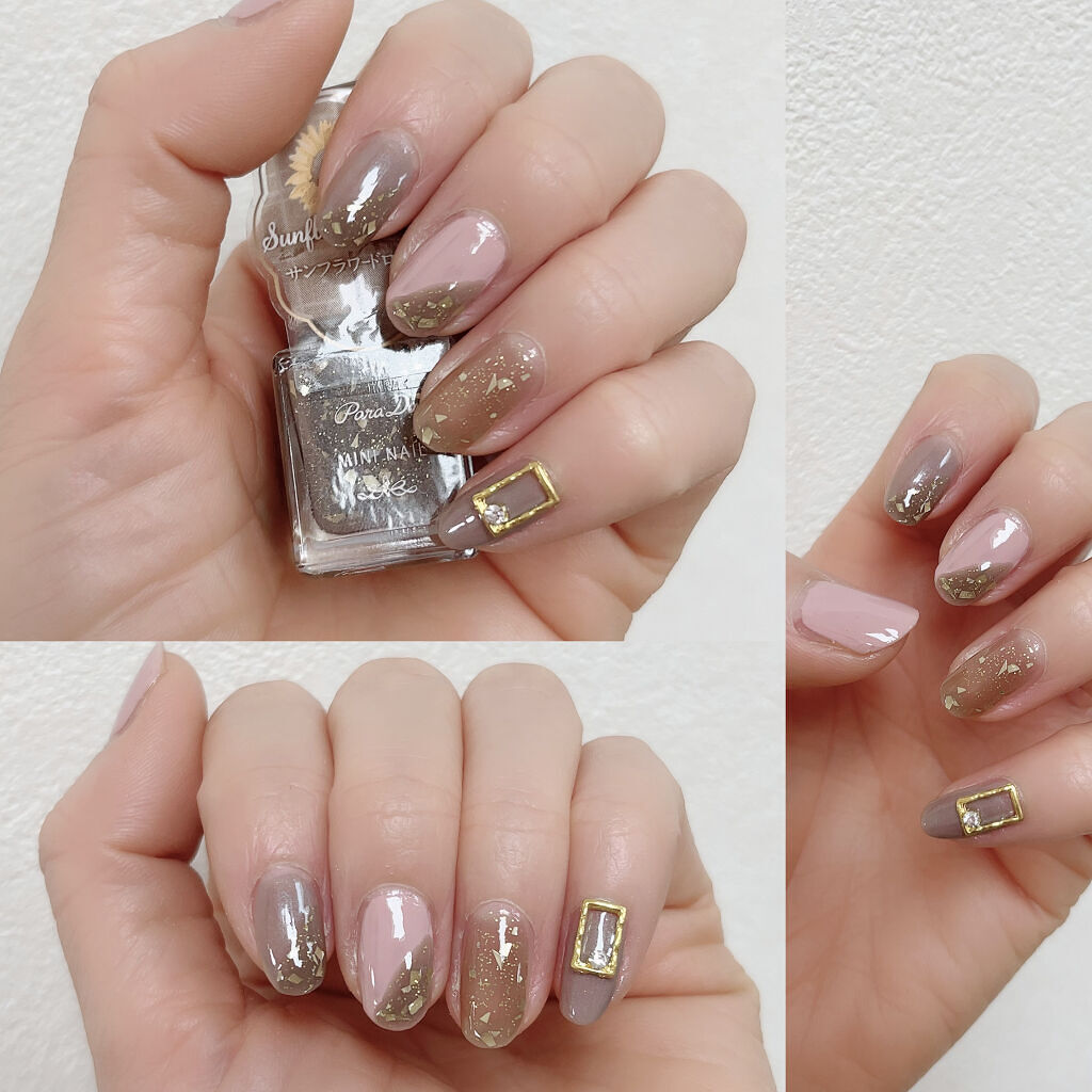 サンフラワー✨ シアーなブラウンにホロラメ 大人可愛いね😍