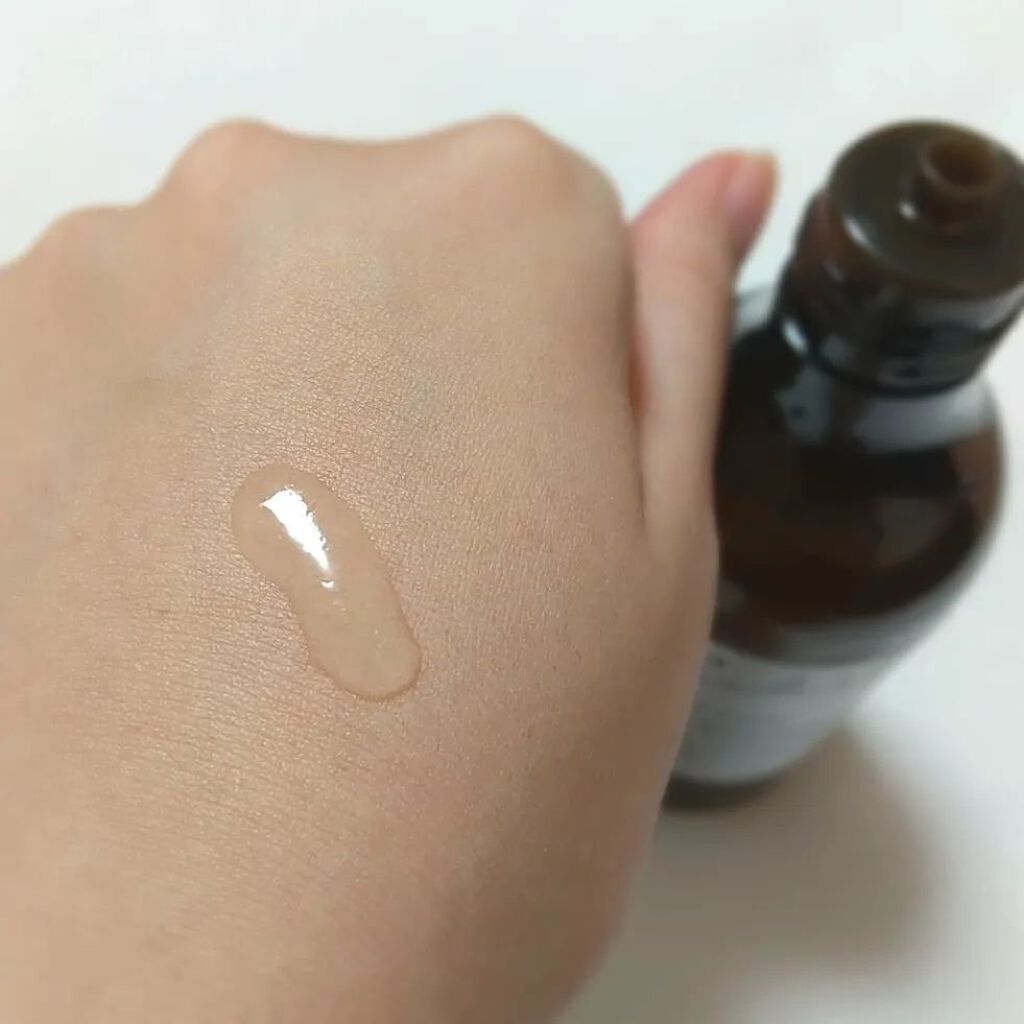 カラーは、自然なベージュカラーです😊 少し濃い感じがして厚塗りになるかなと思いましたが、透明感のある仕上がりで肌によく馴染むカラーです👍 つけたては水光肌のような仕上がりで、時間が経つと落ち着いて丁度いいツヤ肌になります💎✨ 少しエタノールの匂いが気になりましたが、使い心地は特に問題なく感じました👌 高SPF/PAなのに、軽いつけ心地🥰 ツヤ肌にも仕上がるし、伸びがよく使いやすいのも◎ ファンデしないまったりdayにも、しっかりメイクしたい日の化粧下地としても使えるアイテム✨✨